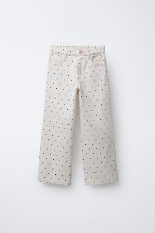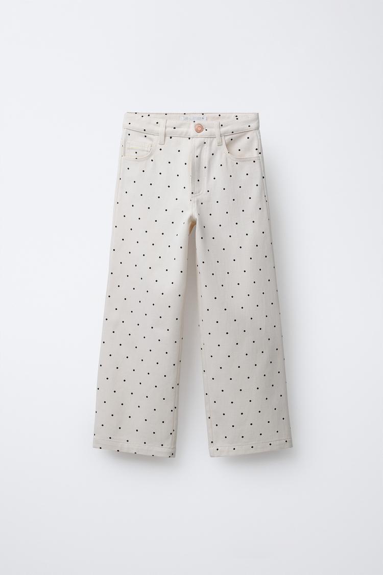 ZARA ДЖИНСЫ WIDE LEG В ГОРОШЕК, ПЕСОЧНЫЙ/ЧЕРНЫЙ