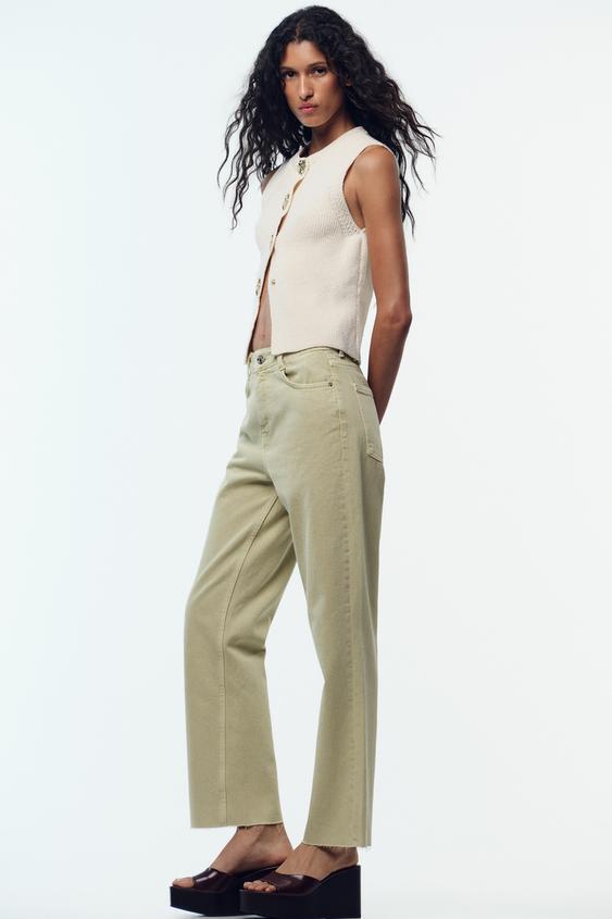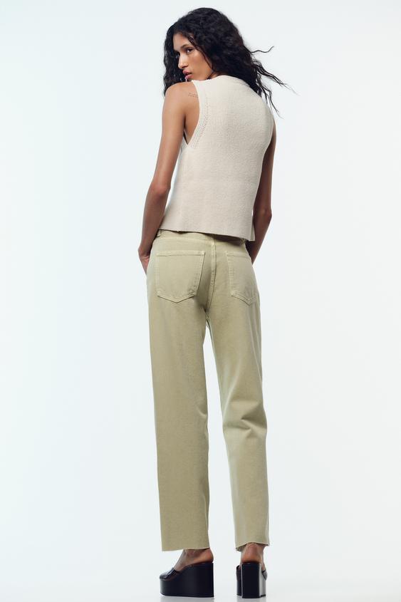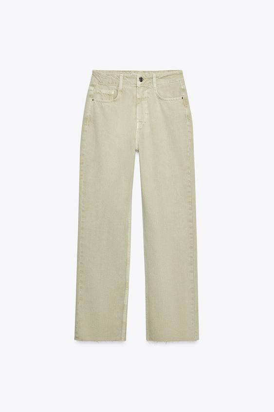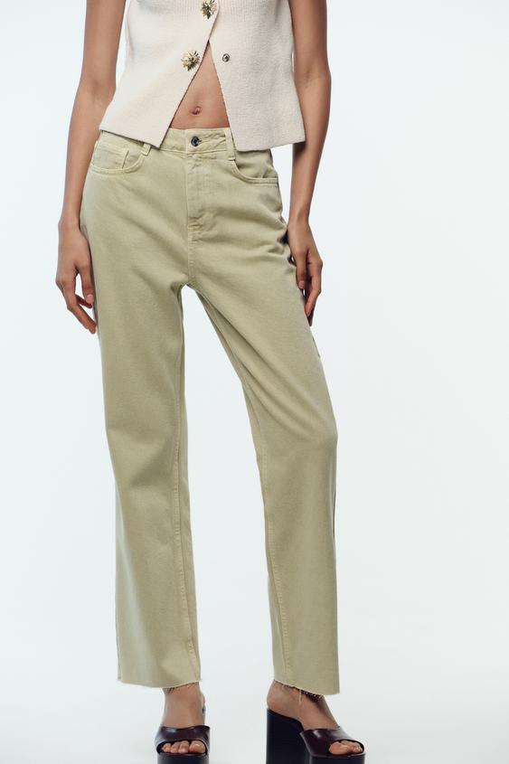 ZARA ДЖИНСЫ Z.02 STRAIGHT ANKLE С ВЫСОКОЙ ПОСАДКОЙ, СВЕТЛЫЙ ХАКИ
