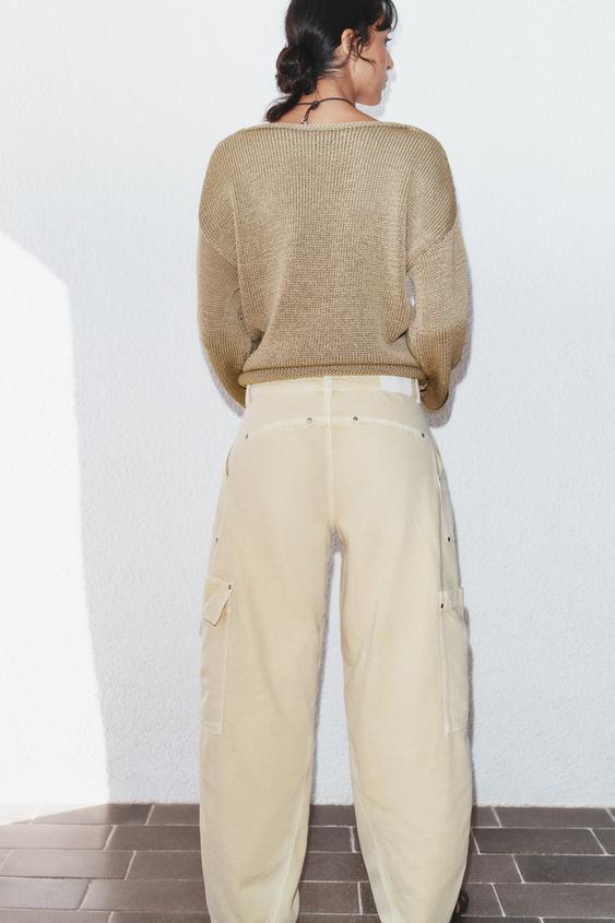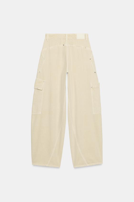 ZARA ДЖИНСЫ Z1975 BARREL КАРГО СО СРЕДНЕЙ ПОСАДКОЙ, ЦВЕТ СЛОНОВОЙ КОСТИ