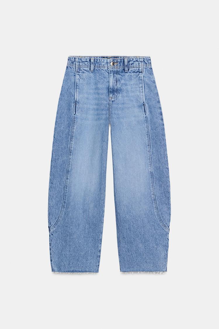 ZARA ДЖИНСЫ Z1975 BARREL С ВЫСОКОЙ ПОСАДКОЙ И УКОРОЧЕННЫМ КРОЕМ, ВЫЦВЕТШИЙ СИНИЙ