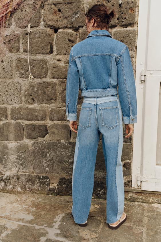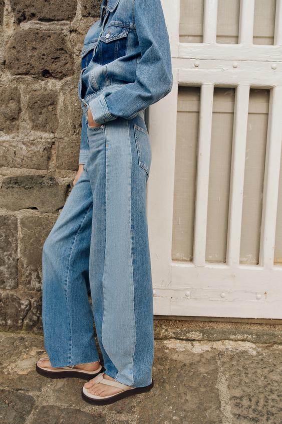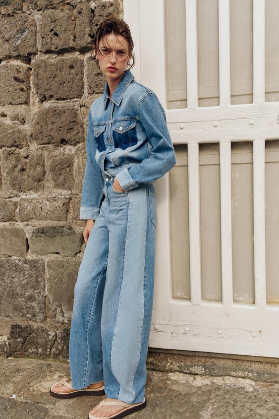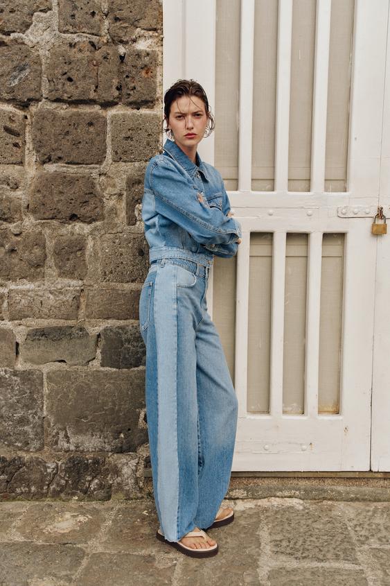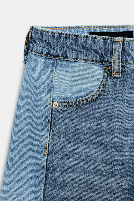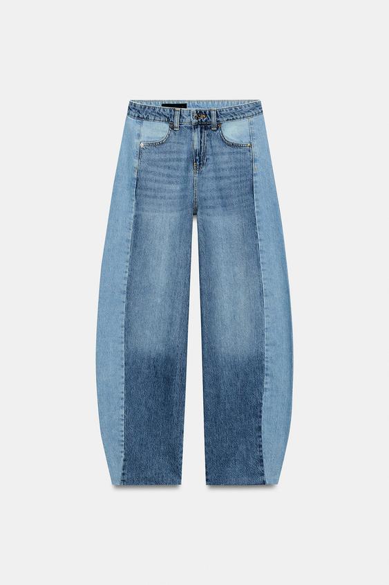 ZARA ДЖИНСЫ Z1975 BARREL СО СРЕДНЕЙ ПОСАДКОЙ И КОМБИНИРОВАННОЙ ТКАНЬЮ, ВЫЦВЕТШИЙ СИНИЙ