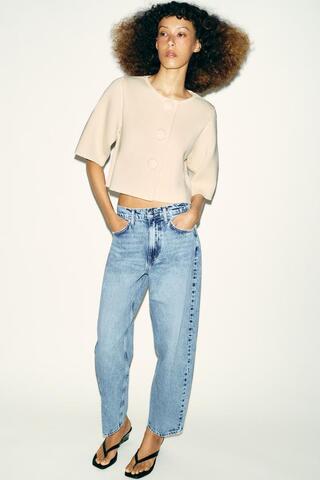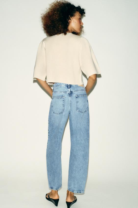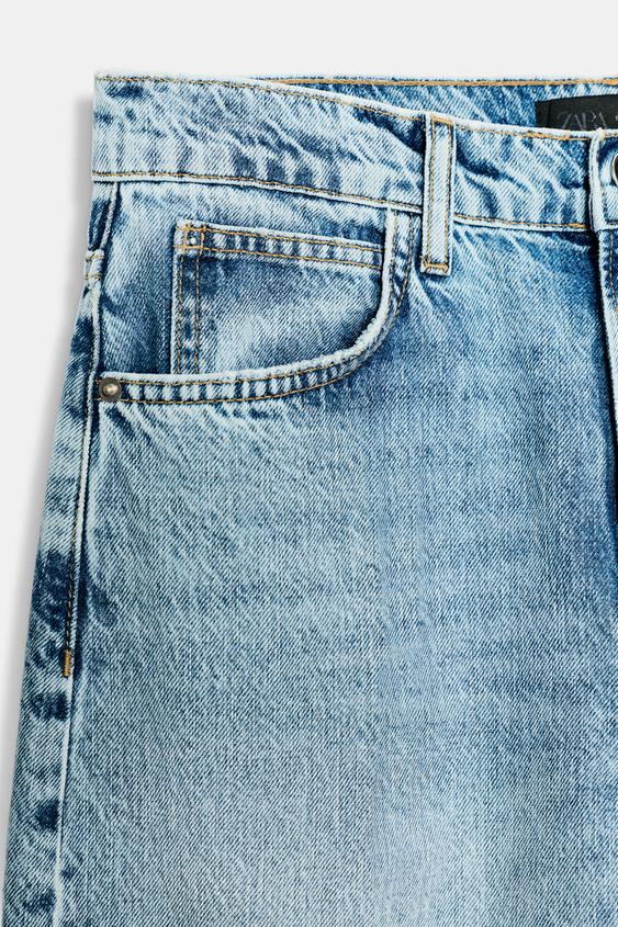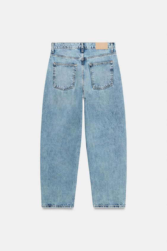 ZARA ДЖИНСЫ Z1975 BARREL СО СРЕДНЕЙ ПОСАДКОЙ И ЗАУТЮЖЕННЫМИ СТРЕЛКАМИ, ВЫЦВЕТШИЙ СИНИЙ