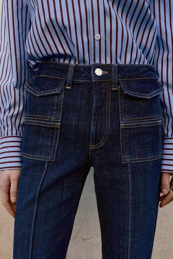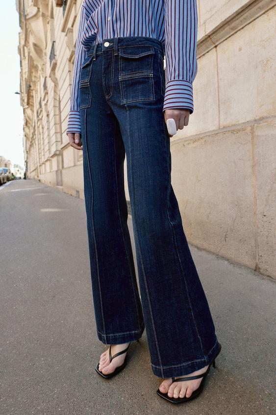 ZARA ДЖИНСЫ Z1975 BOOTCUT С ВЫСОКОЙ ПОСАДКОЙ И ОТСТРОЧКОЙ, СИНИЙ