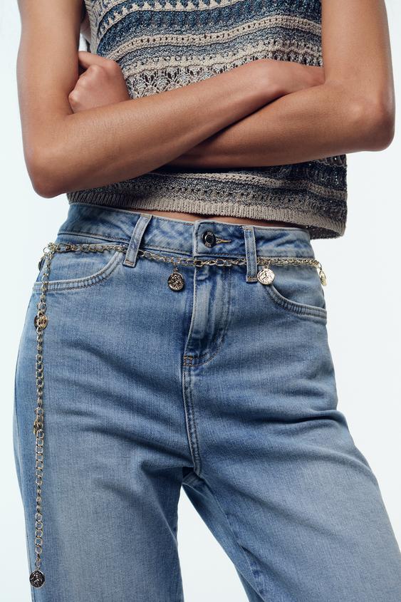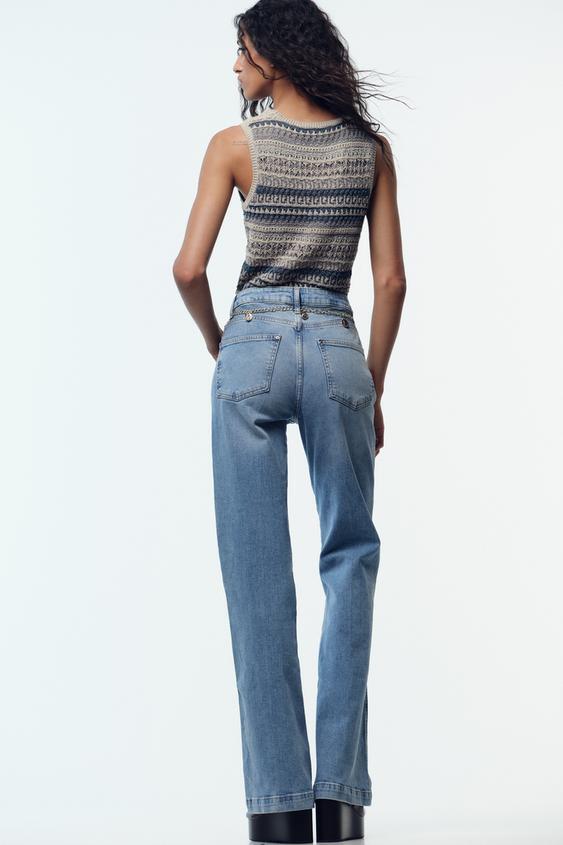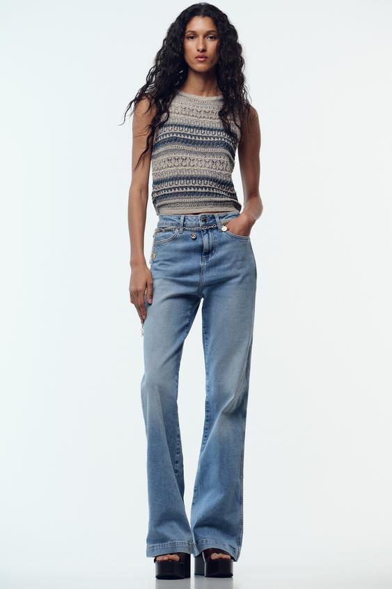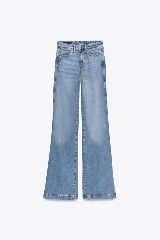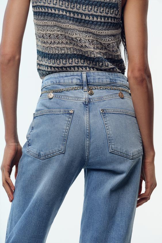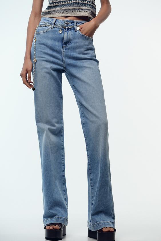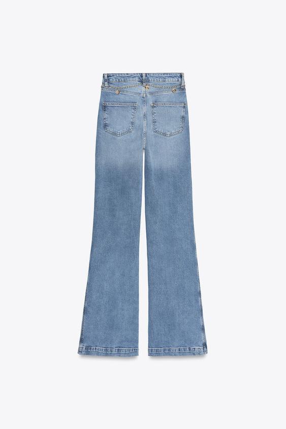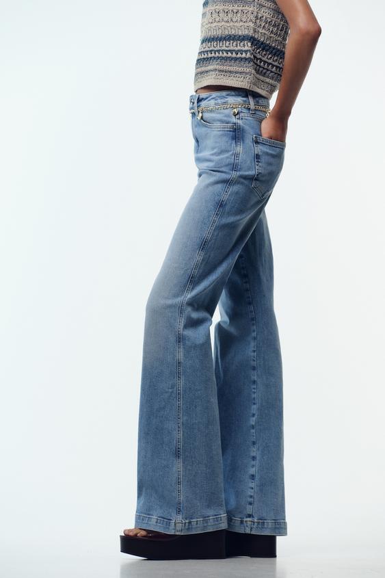 ZARA ДЖИНСЫ Z1975 BOOTCUT С ВЫСОКОЙ ПОСАДКОЙ И РЕМНЕМ-ЦЕПОЧКОЙ, СИНИЙ