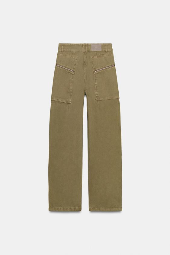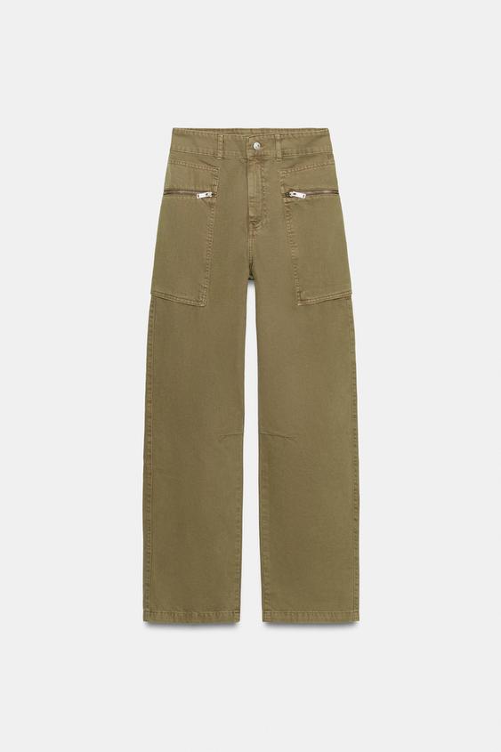 ZARA ДЖИНСЫ Z1975 КАРГО СО СРЕДНЕЙ ПОСАДКОЙ И МОЛНИЯМИ, ХАКИ