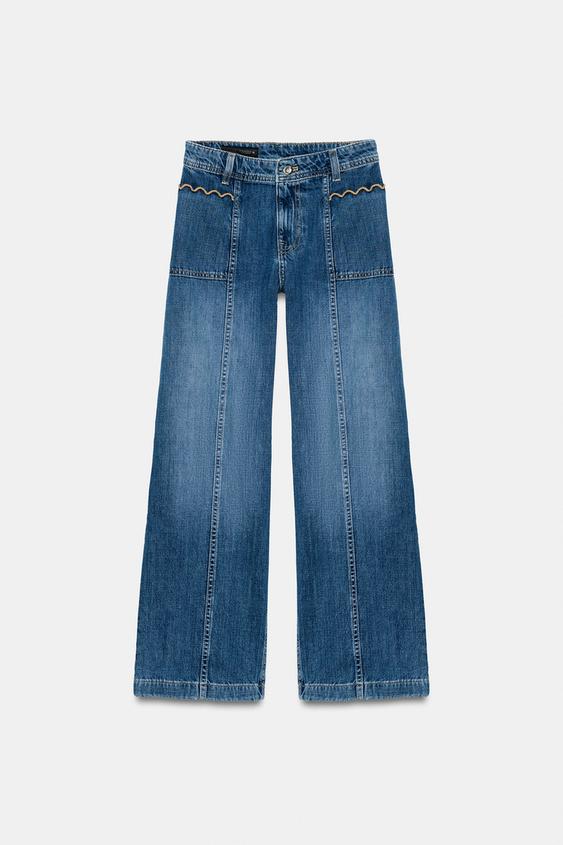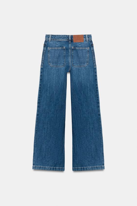 ZARA ДЖИНСЫ Z1975 КЮЛОТЫ С ВЫСОКОЙ ПОСАДКОЙ И ОТСТРОЧКОЙ, СИНИЙ