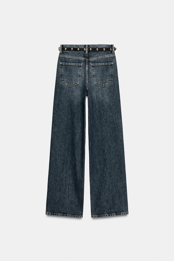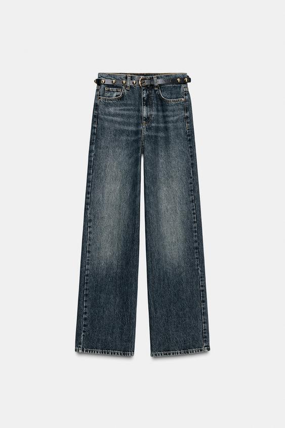 ZARA ДЖИНСЫ Z1975 С ВЫСОКОЙ ТАЛИЕЙ, ПРЯМЫЕ, СУЖЕННЫЕ, С РЕМНЕМ, ИНДИГО