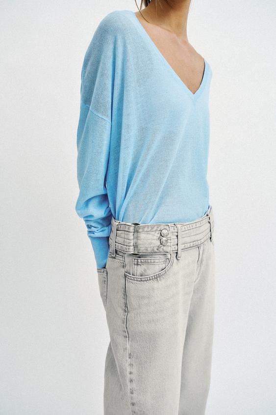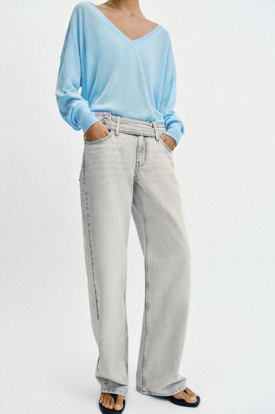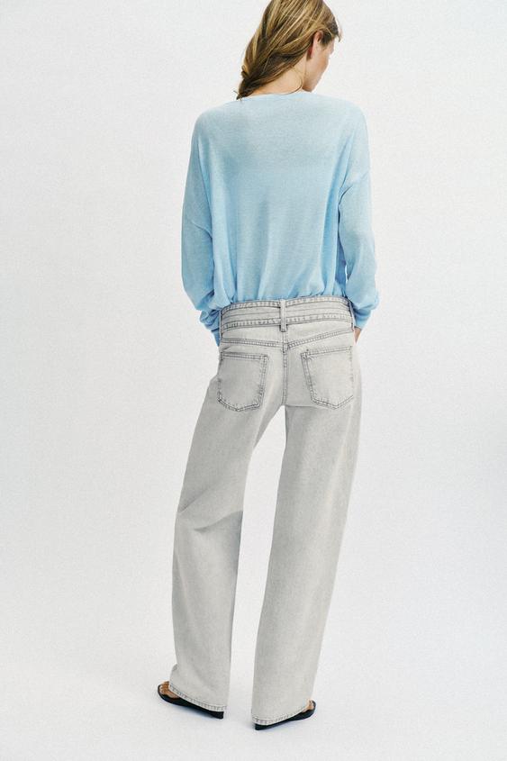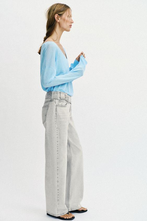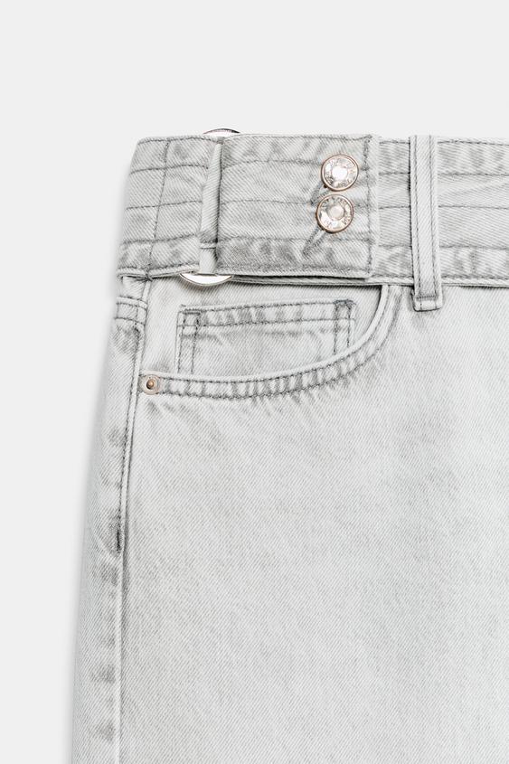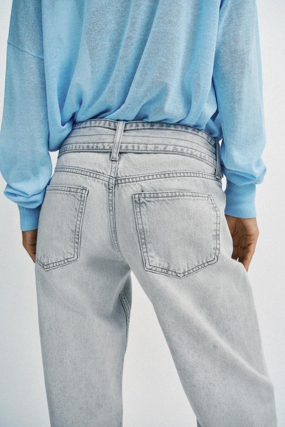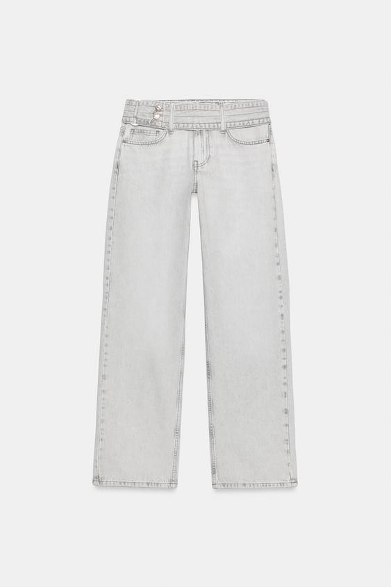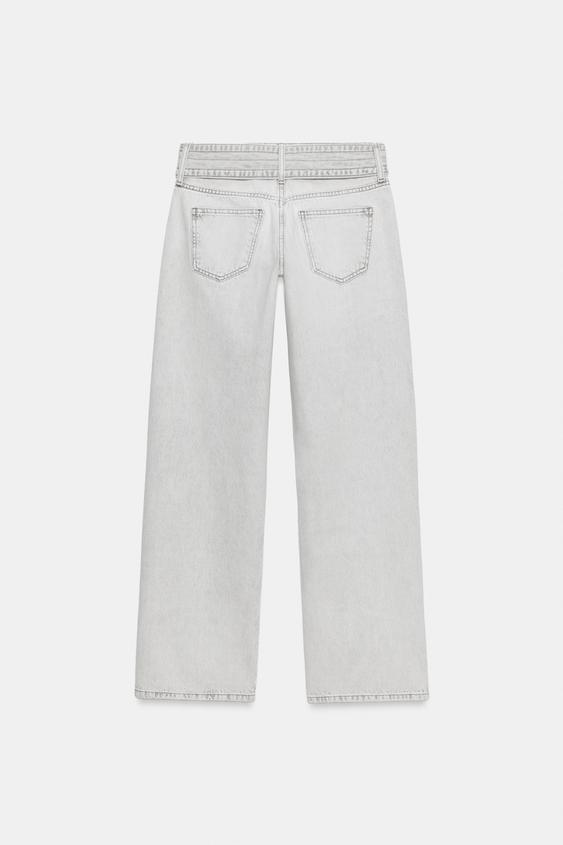 ZARA ДЖИНСЫ Z1975 С ЗАНИЖЕННОЙ ТАЛИЕЙ И РЕМНЕМ, СВЕТЛО-СЕРЫЙ