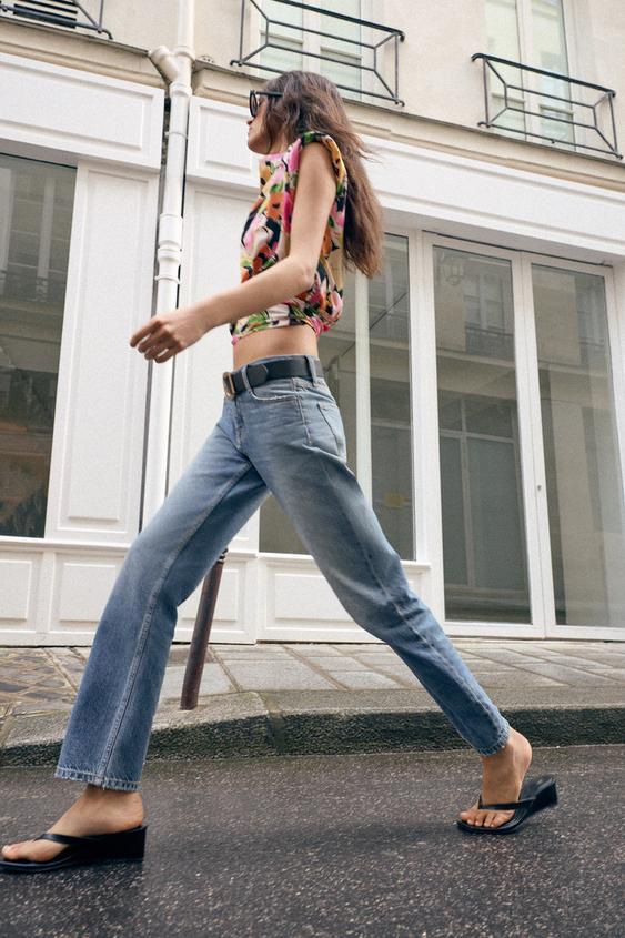 ZARA ДЖИНСЫ Z1975 SLIM СО СРЕДНЕЙ ПОСАДКОЙ И РЕМНЕМ, ВЫЦВЕТШИЙ СИНИЙ