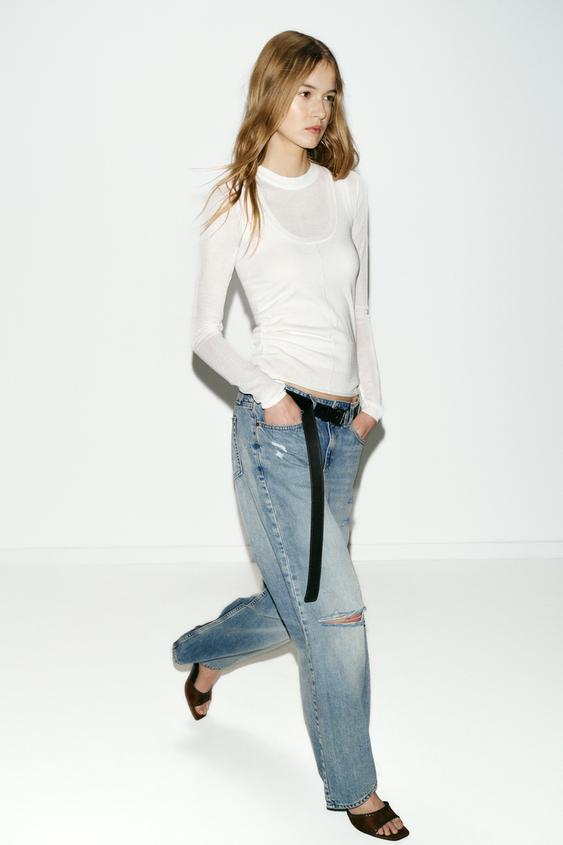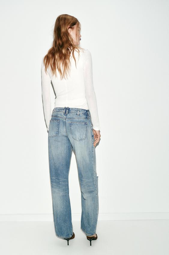 ZARA ДЖИНСЫ Z1975 STRAIGHT С НИЗКОЙ ПОСАДКОЙ И РАЗРЕЗАМИ, ИНДИГО