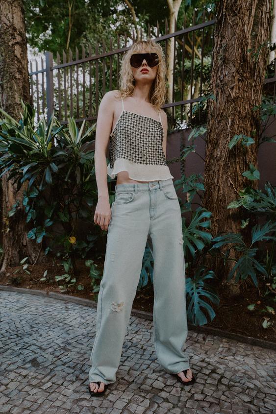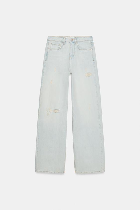 ZARA ДЖИНСЫ Z1975 STRAIGHT СО СРЕДНЕЙ ПОСАДКОЙ И РАЗРЕЗАМИ, ГОЛУБОЙ