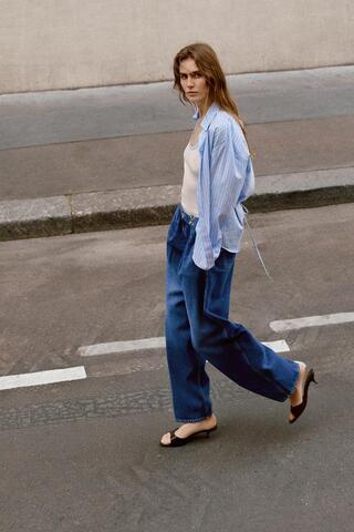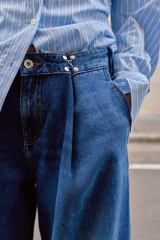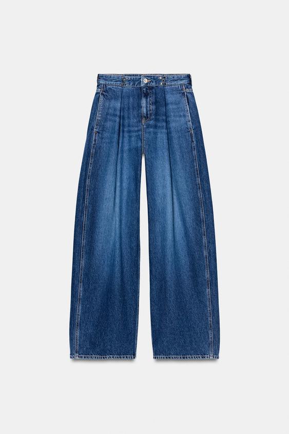 ZARA ДЖИНСЫ Z1975 СВОБОДНОГО КРОЯ С ВЫСОКОЙ ПОСАДКОЙ И КРЮЧКАМИ, ВЫЦВЕТШИЙ СИНИЙ