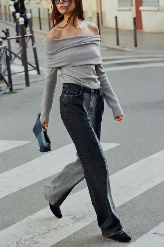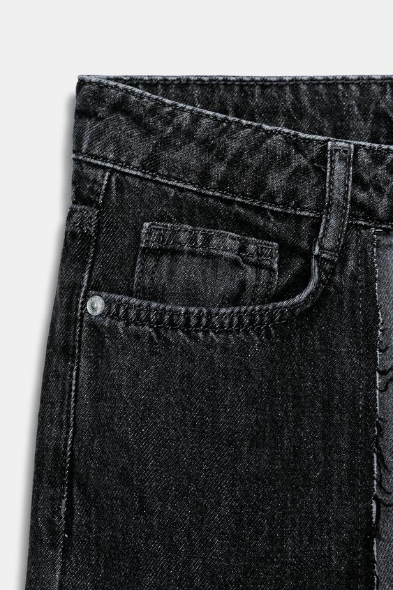 ZARA ДЖИНСЫ Z1975 WIDE LEG С ВЫСОКОЙ ПОСАДКОЙ И КОНТРАСТНЫМИ ДЕТАЛЯМИ, СЕРЫЙ