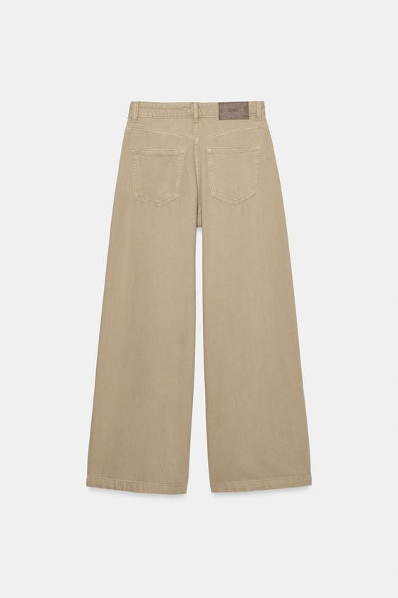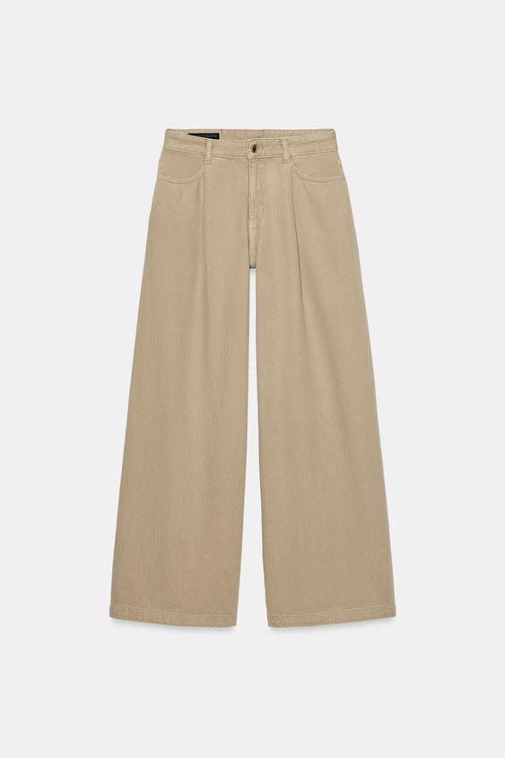 ZARA ДЖИНСЫ Z1975 WIDE LEG С ВЫСОКОЙ ПОСАДКОЙ И ЗАЩИПАМИ, ПЕСОЧНЫЙ