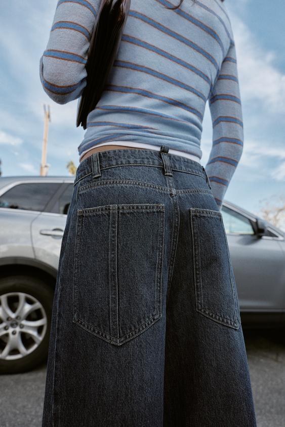 ZARA ДЖИНСЫ Z1975 WIDE LEG СВОБОДНОГО КРОЯ СО ШВАМИ, СИНИЙ