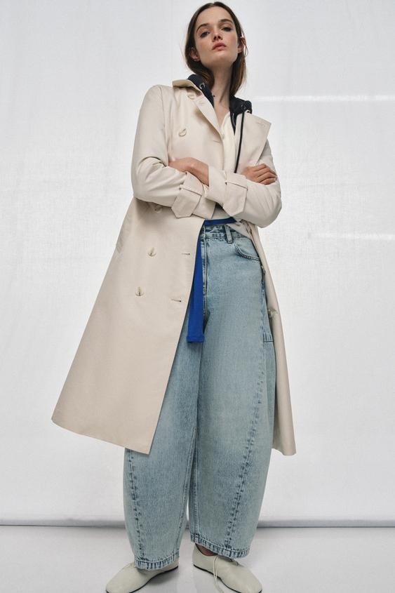 ZARA ДЖИНСЫ ZW COLLECTION ANKLE BALLOON СО СРЕДНЕЙ ПОСАДКОЙ, ГОЛУБОЙ
