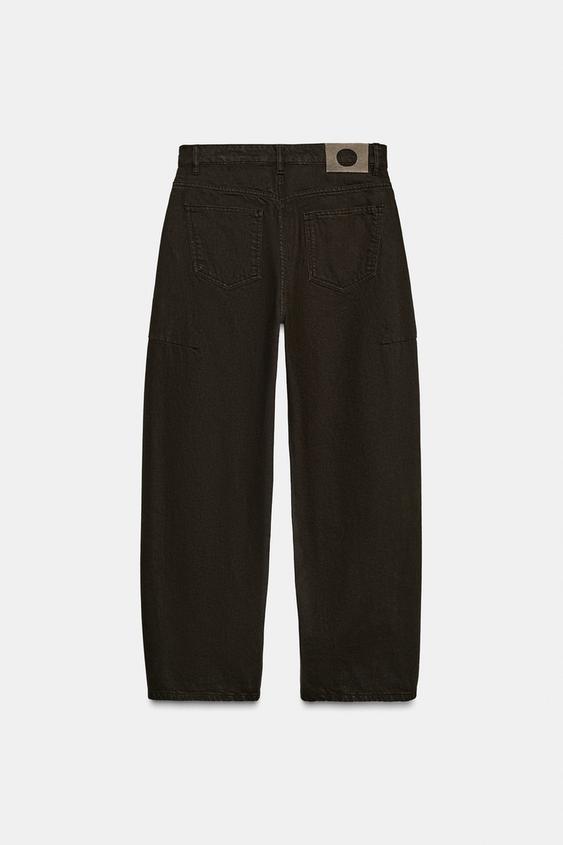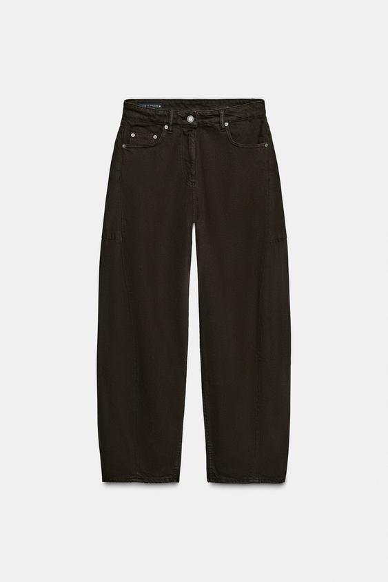 ZARA ДЖИНСЫ ZW COLLECTION ANKLE BALLOON СО СРЕДНЕЙ ПОСАДКОЙ, ШОКОЛАДНЫЙ