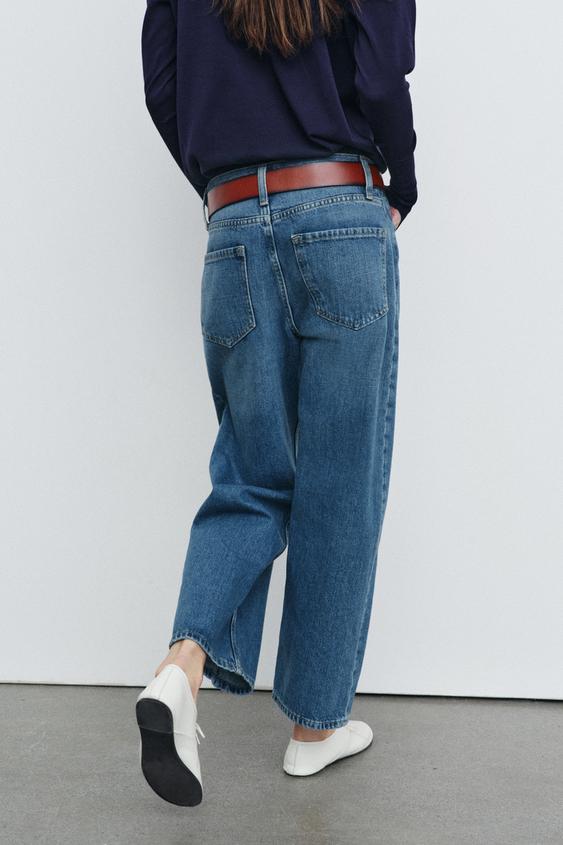 ZARA ДЖИНСЫ ZW COLLECTION ANKLE RELAXED СО СРЕДНЕЙ ПОСАДКОЙ, ВЫЦВЕТШИЙ СИНИЙ