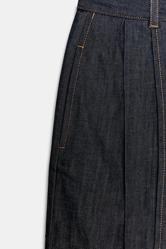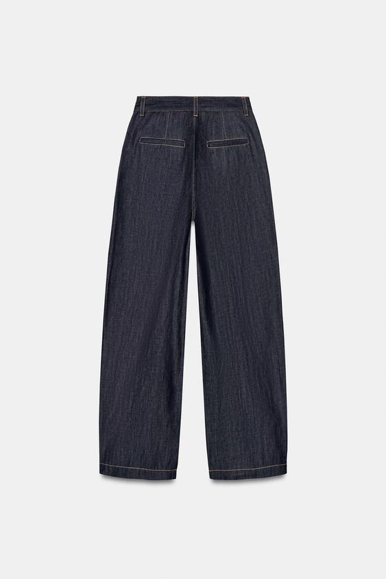 ZARA ДЖИНСЫ ZW COLLECTION BALLOON С ВЫСОКОЙ ПОСАДКОЙ И ЗАЩИПАМИ, СИНИЙ
