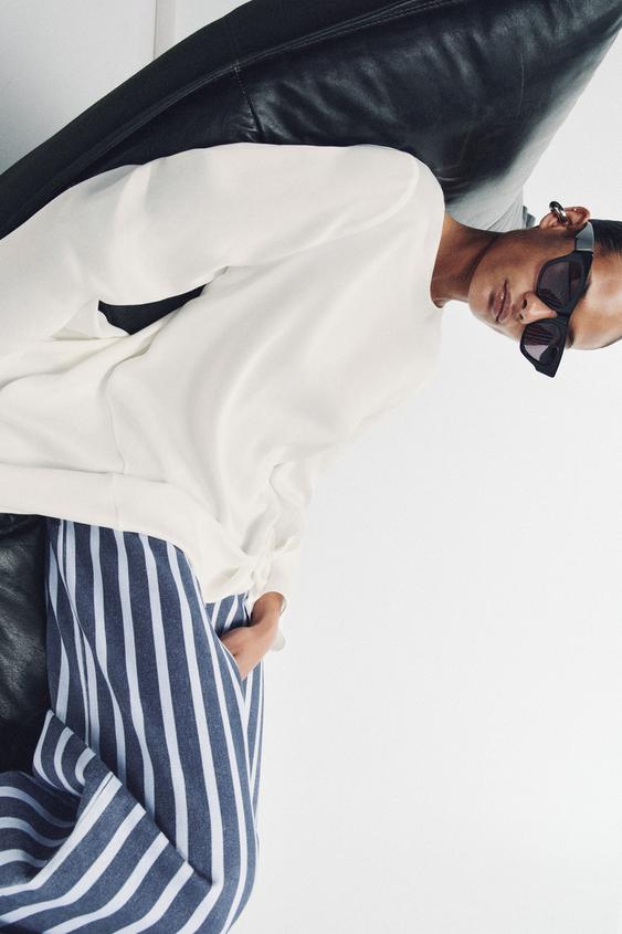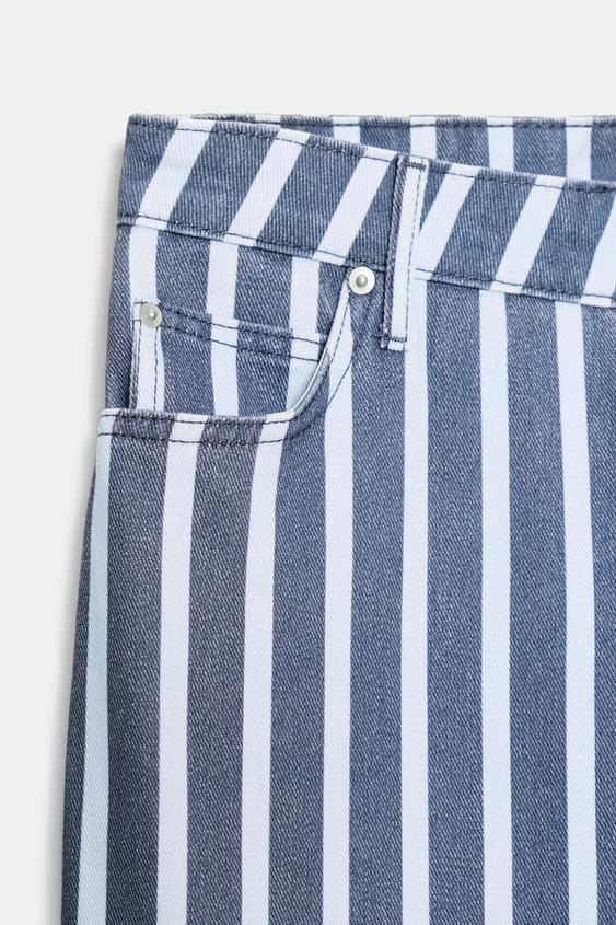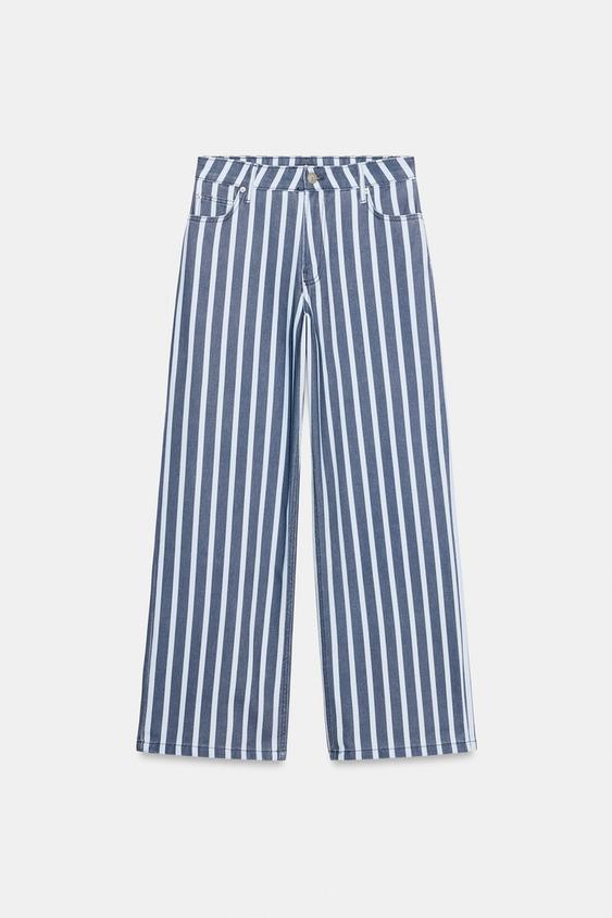 ZARA ДЖИНСЫ ZW COLLECTION LOOSE СО СРЕДНЕЙ ПОСАДКОЙ И ПОЛОСКАМИ, СИНИЙ