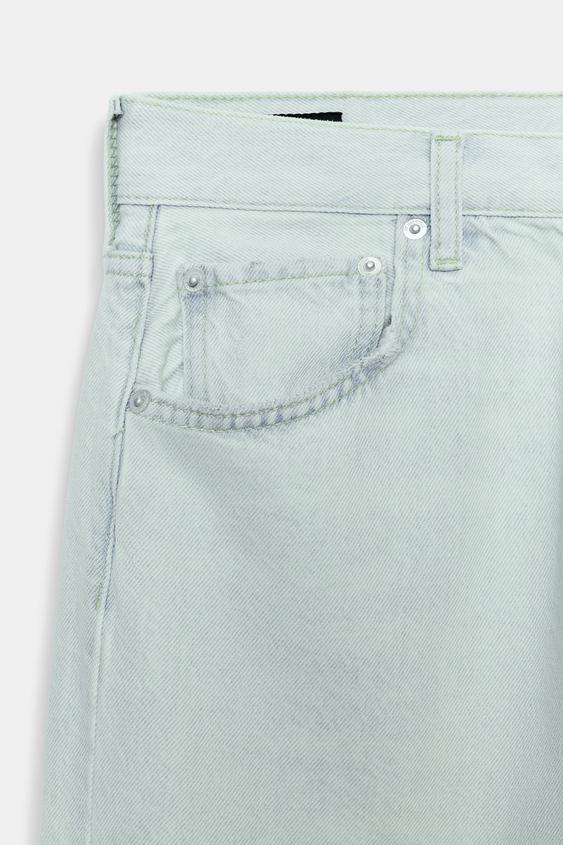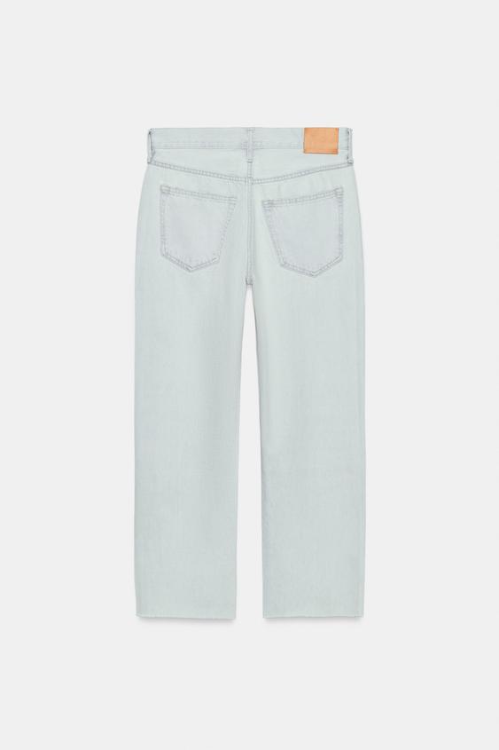 ZARA ДЖИНСЫ ZW COLLECTION ПРЯМОГО КРОЯ СО СРЕДНЕЙ ПОСАДКОЙ И РВАНЫМИ ДЕТАЛЯМИ, ГОЛУБОЙ
