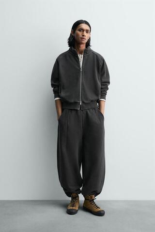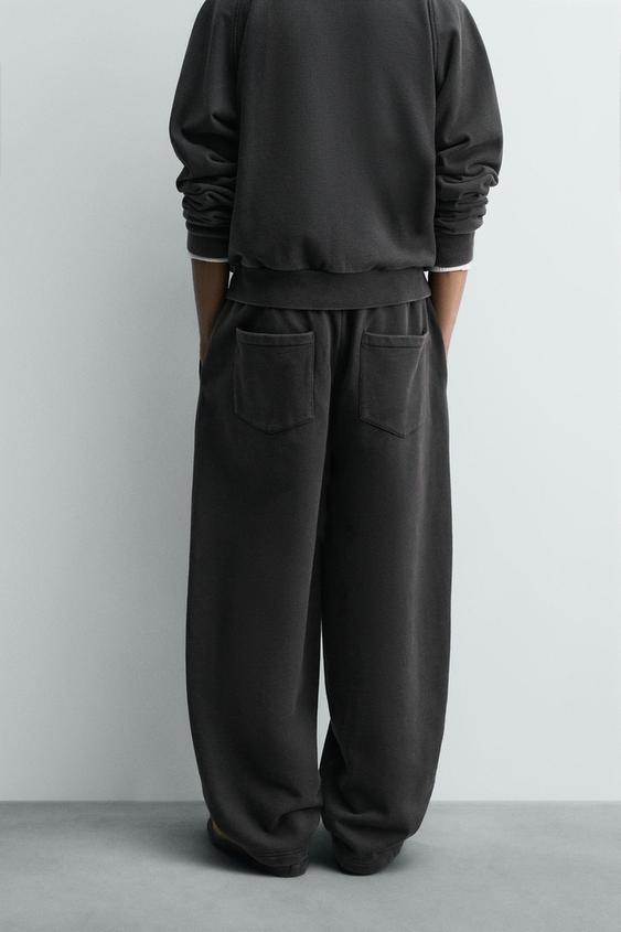 ZARA ДЖОГГЕРЫ BALLOON FIT С ЭФФЕКТОМ ПОТЕРТОСТИ - LIMITED EDITION, ТЕМНЫЙ АНТРАЦИТ