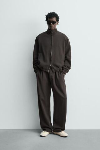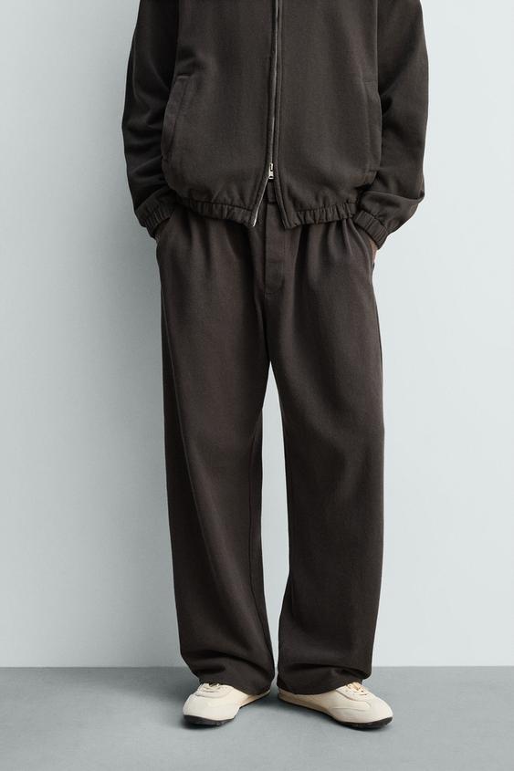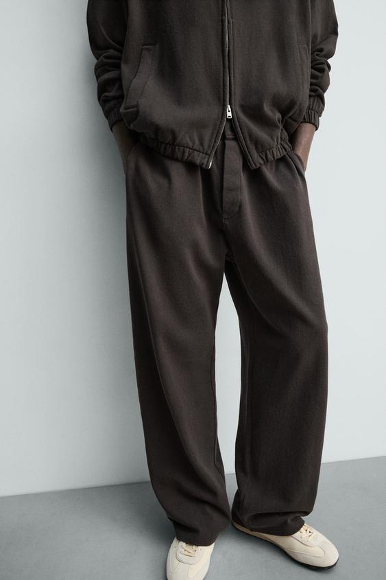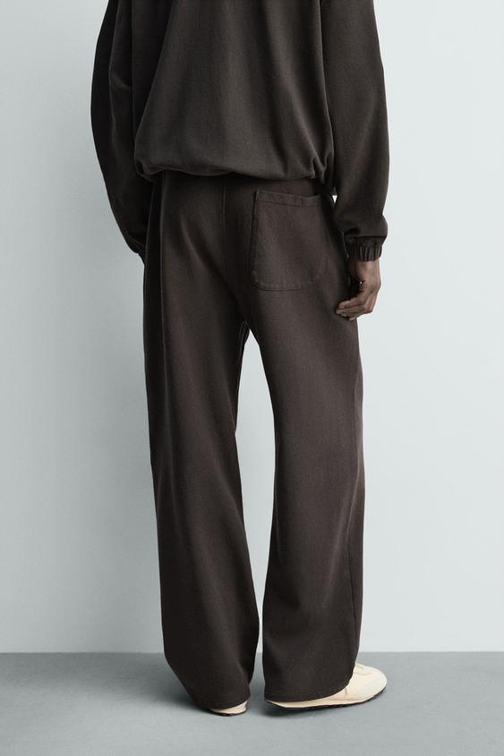 ZARA ДЖОГГЕРЫ ИЗ ТРИКОТАЖА С ЭФФЕКТОМ ПОТЕРТОСТИ, ЧЕРНЫЙ/КОРИЧНЕВЫЙ
