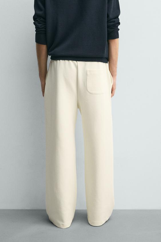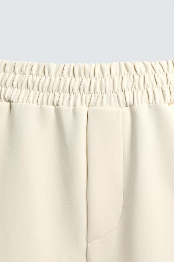ZARA ДЖОГГЕРЫ ИЗ ВЫСОКОТЕХНОЛОГИЧНОЙ ТКАНИ С ДЕКОРАТИВНЫМИ ШВАМИ, ЭКРЮ