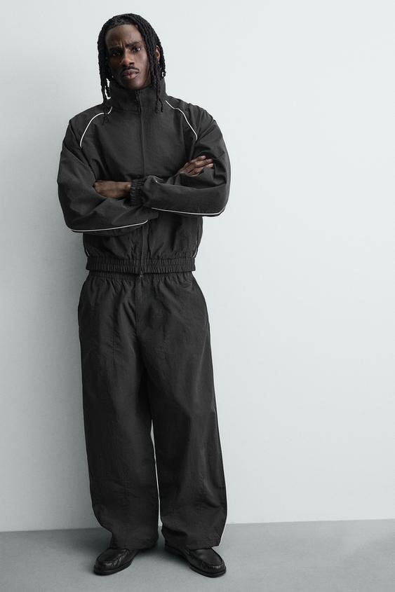 ZARA ДЖОГГЕРЫ ИЗ ВЫСОКОТЕХНОЛОГИЧНОЙ ТКАНИ С КОНТРАСТНЫМИ ПОЛОСАМИ, ЧЕРНЫЙ