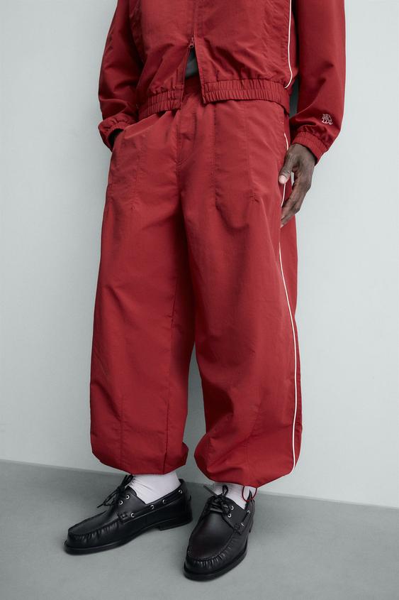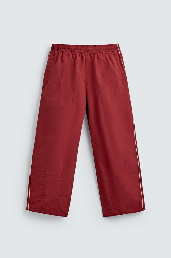 ZARA ДЖОГГЕРЫ ИЗ ВЫСОКОТЕХНОЛОГИЧНОЙ ТКАНИ С КОНТРАСТНЫМИ ПОЛОСАМИ, КРАСНЫЙ