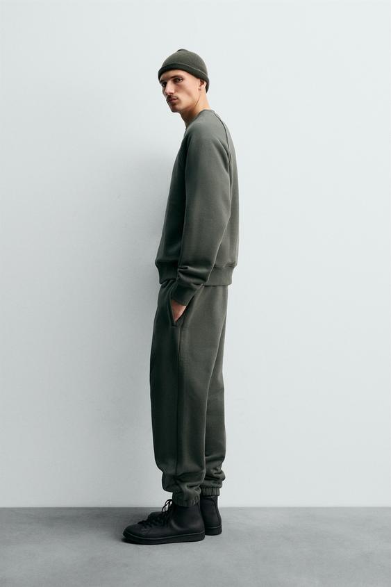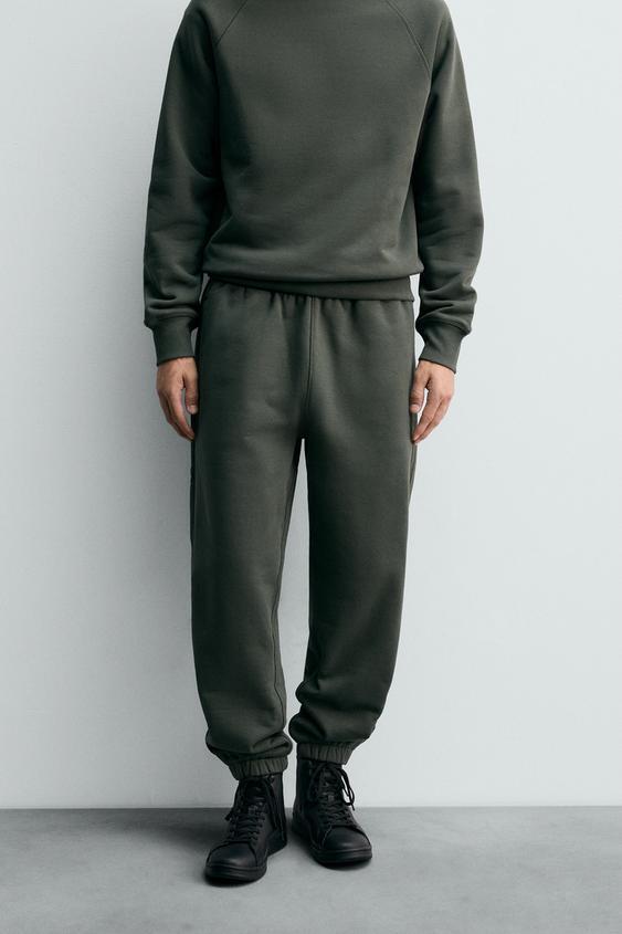 ZARA ДЖОГГЕРЫ КЛАССИЧЕСКОГО КРОЯ С КАНТОМ, МЯГКИЙ ЗЕЛЕНЫЙ