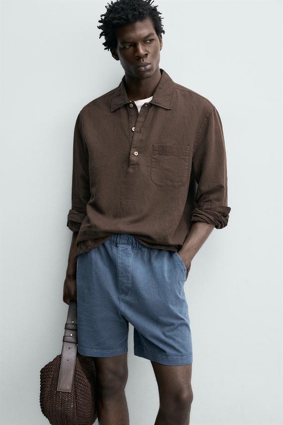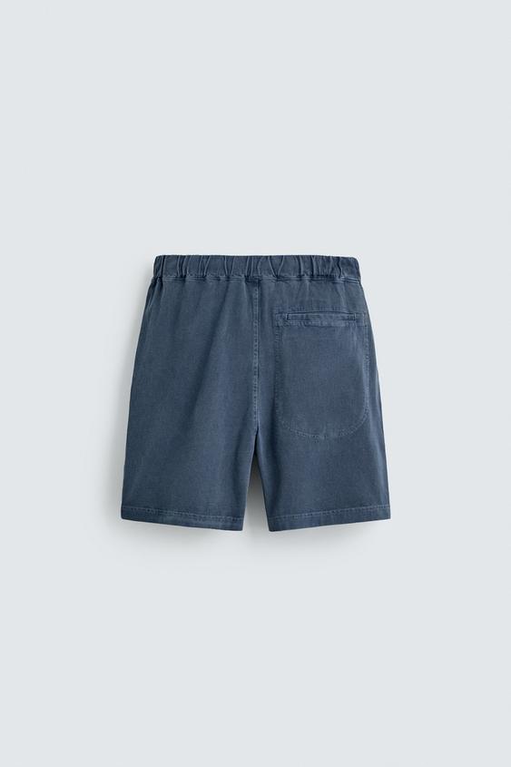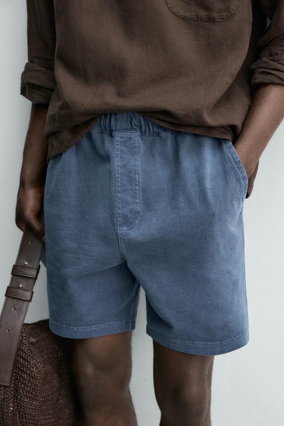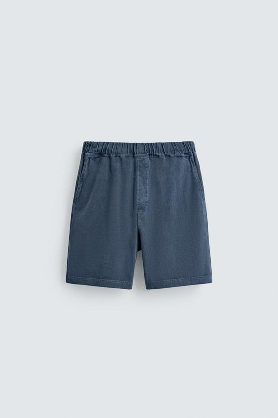 ZARA ШОРТЫ-ДЖОГГЕРЫ С ЭФФЕКТОМ ПОТЕРТОСТИ, СИНИЙ