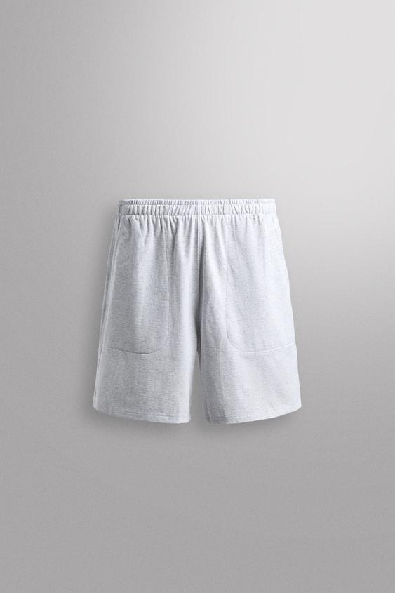ZARA ДЖОГГЕРЫ-ШОРТЫ ИЗ ХЛОПКА, СЕРЫЙ МЕЛАНЖ