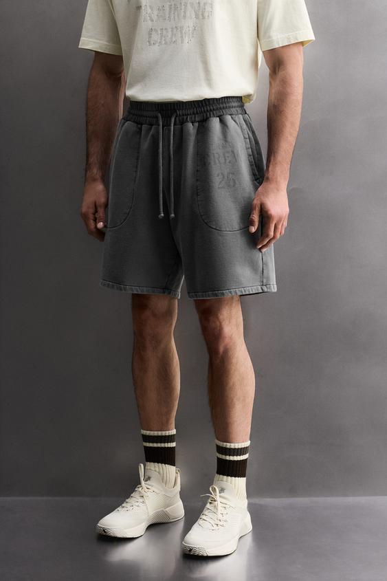 ZARA ДЖОГГЕРЫ-ШОРТЫ С ЭФФЕКТОМ ПОТЕРТОСТИ TRAINING, СЕРЫЙ/СИНИЙ