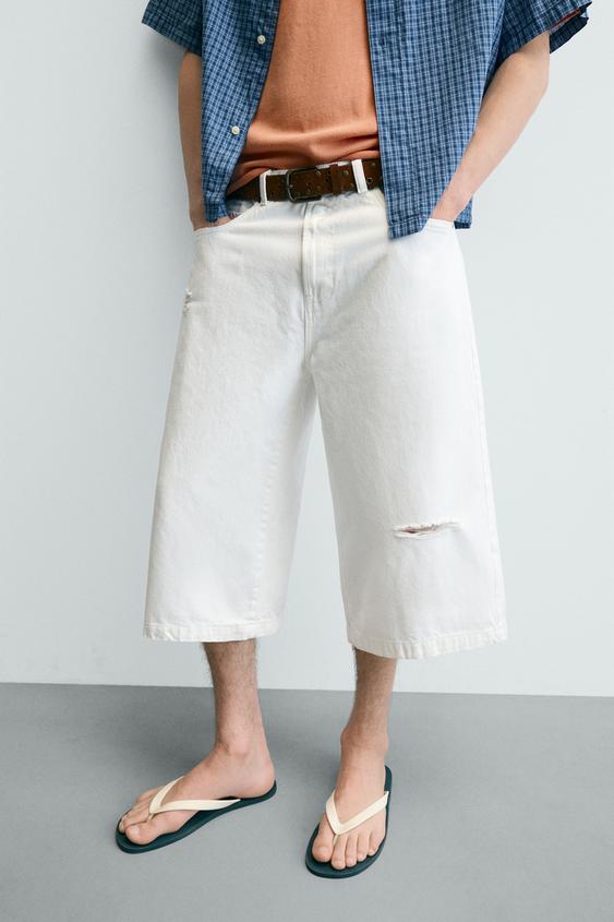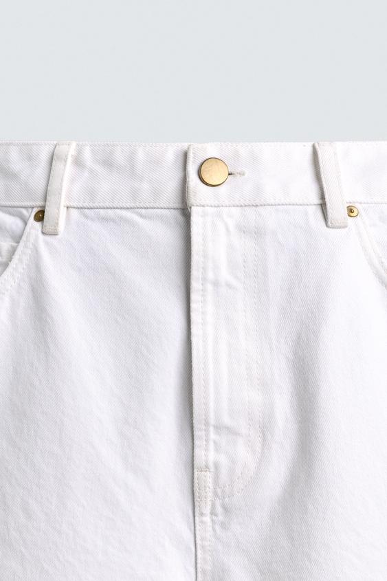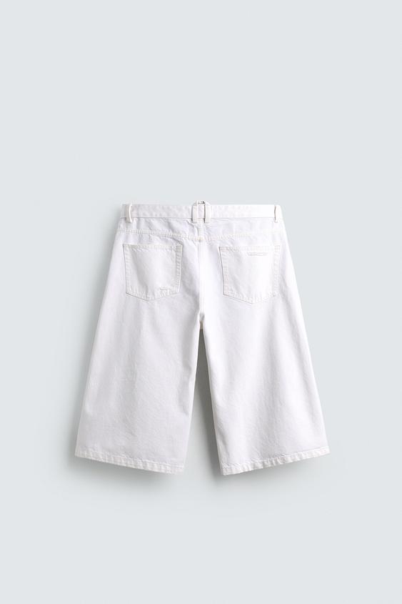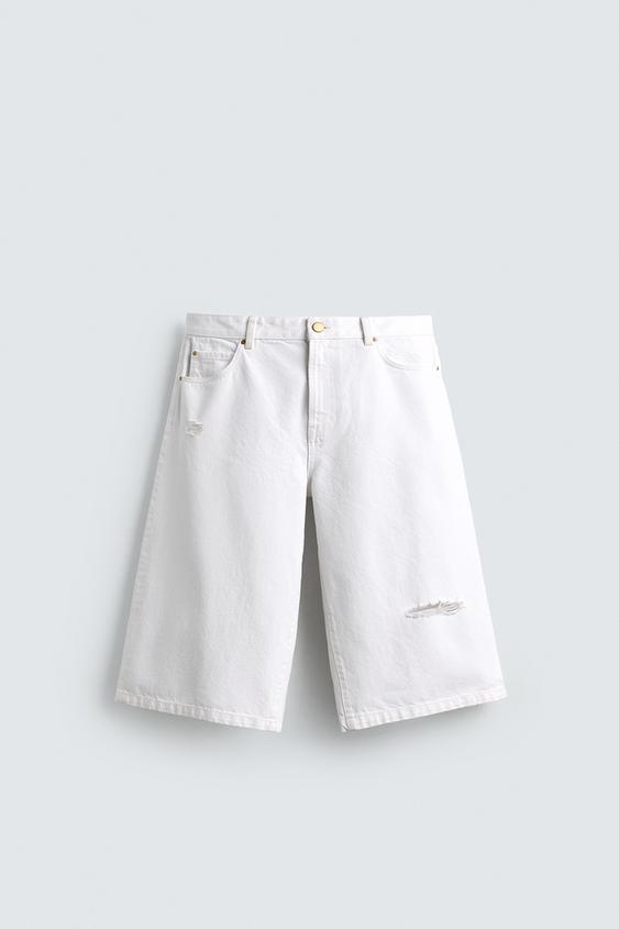 ZARA ШОРТЫ ИЗ ДЕНИМА RELAXED FIT С РАЗРЕЗАМИ, БЕЛЫЙ