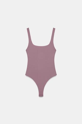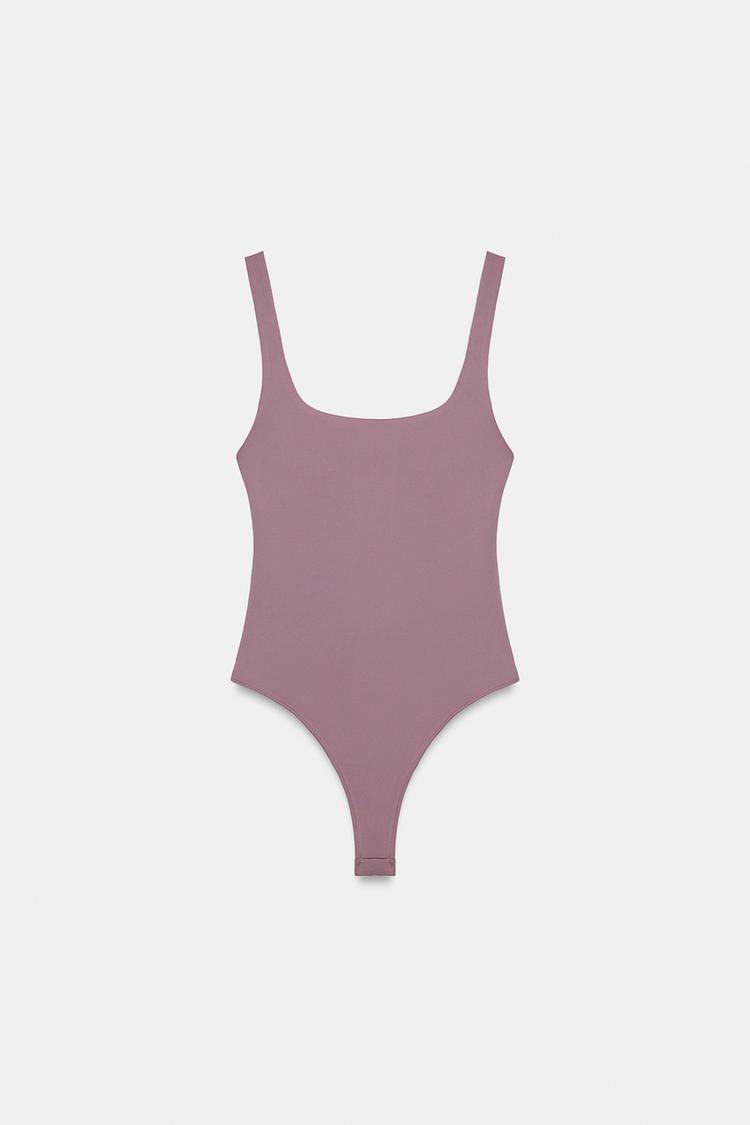 ZARA ЭЛАСТИЧНОЕ БОДИ С КВАДРАТНЫМ ВЫРЕЗОМ, РОЗОВЫЙ/ЛИЛОВЫЙ