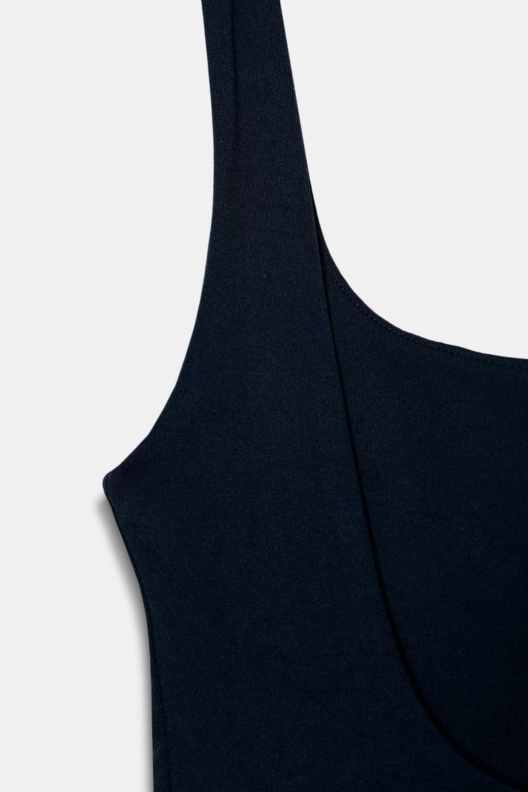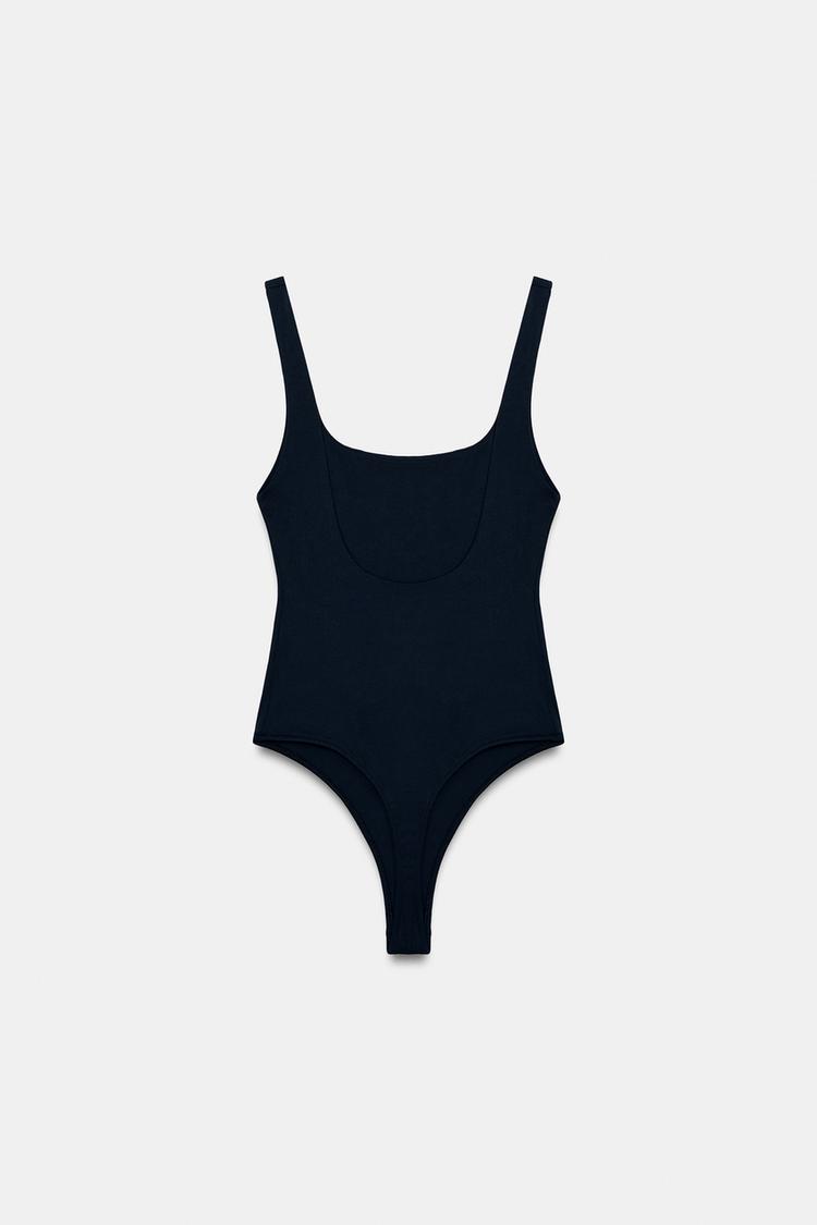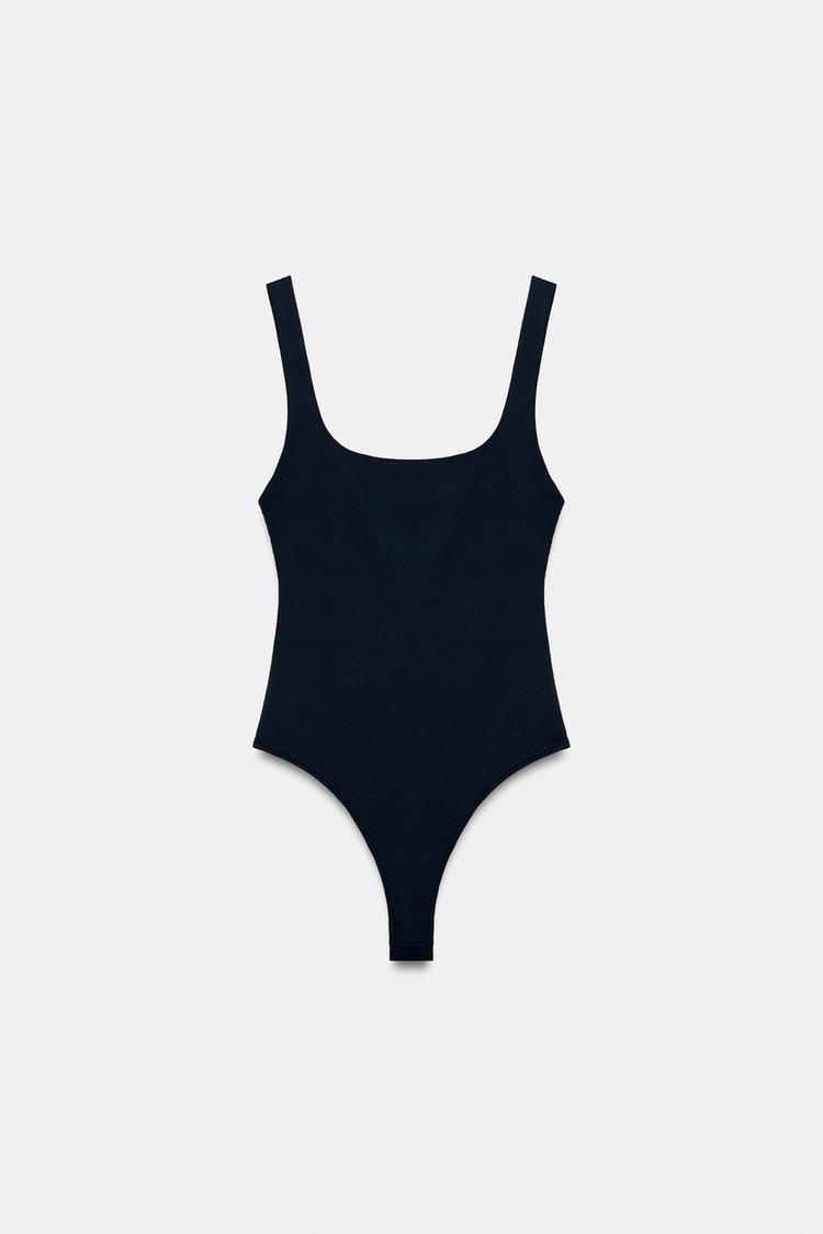 ZARA ЭЛАСТИЧНОЕ БОДИ С КВАДРАТНЫМ ВЫРЕЗОМ, СИНИЙ