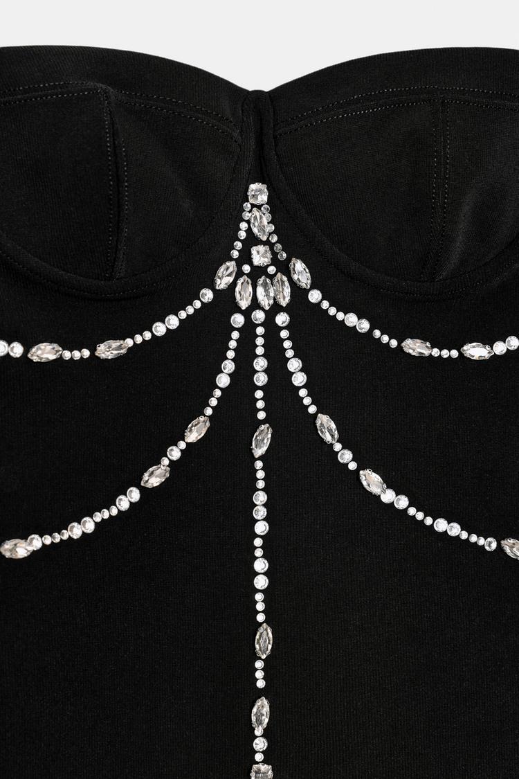 ZARA ЭЛАСТИЧНОЕ ПЛАТЬЕ СО СТРАЗАМИ, ЧЕРНЫЙ
