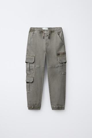 ZARA ЭЛАСТИЧНЫЕ БРЮКИ-ДЖОГГЕРЫ С КАРМАНАМИ, СЕРОВАТО-КОРИЧНЕВЫЙ