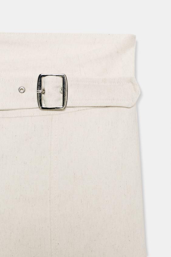ZARA ЭЛАСТИЧНЫЕ БРЮКИ ИЗ САРЖИ С ПЕТЛЯМИ, СЛОНОВАЯ КОСТЬ