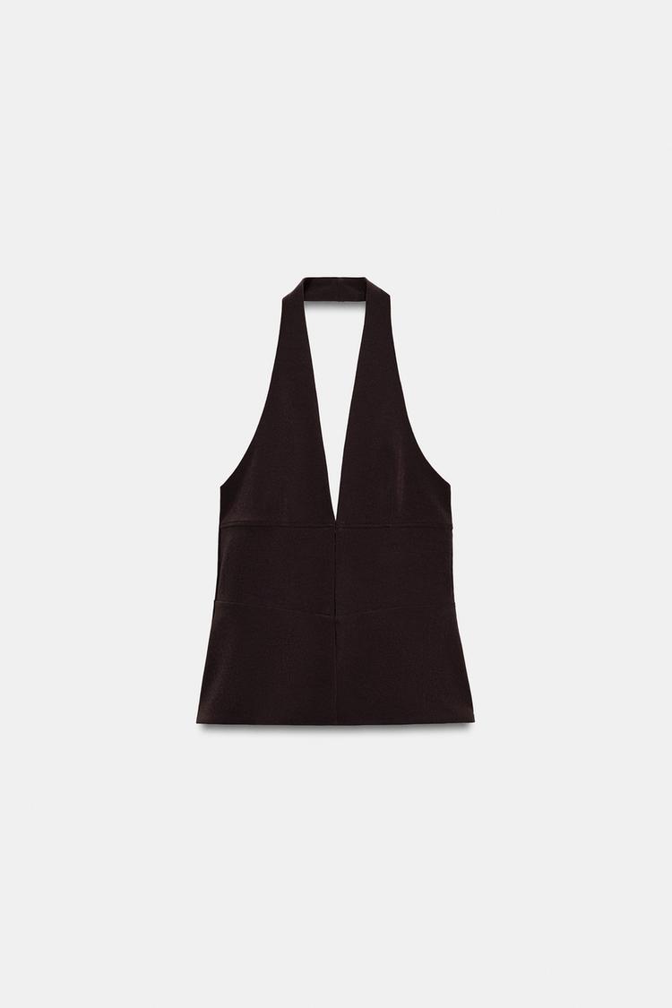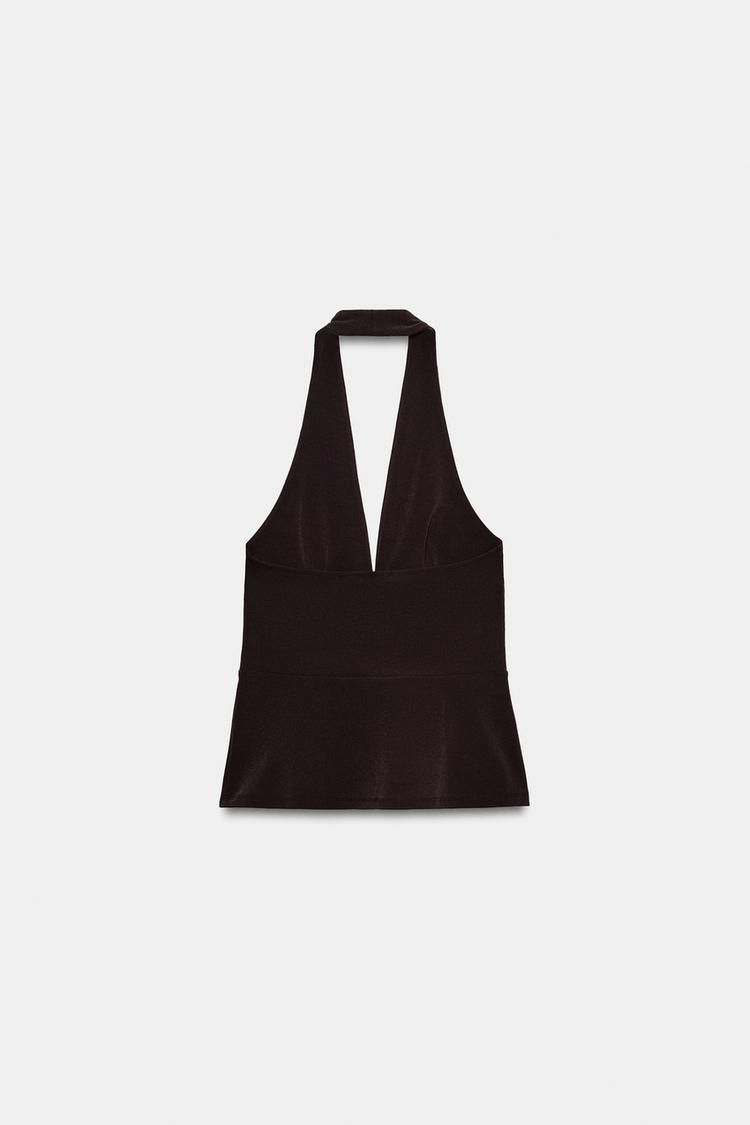 ZARA ЭЛАСТИЧНЫЙ ТОП ХАЛТЕР В ГОРОШЕК, ТЕМНО-КОРИЧНЕВЫЙ