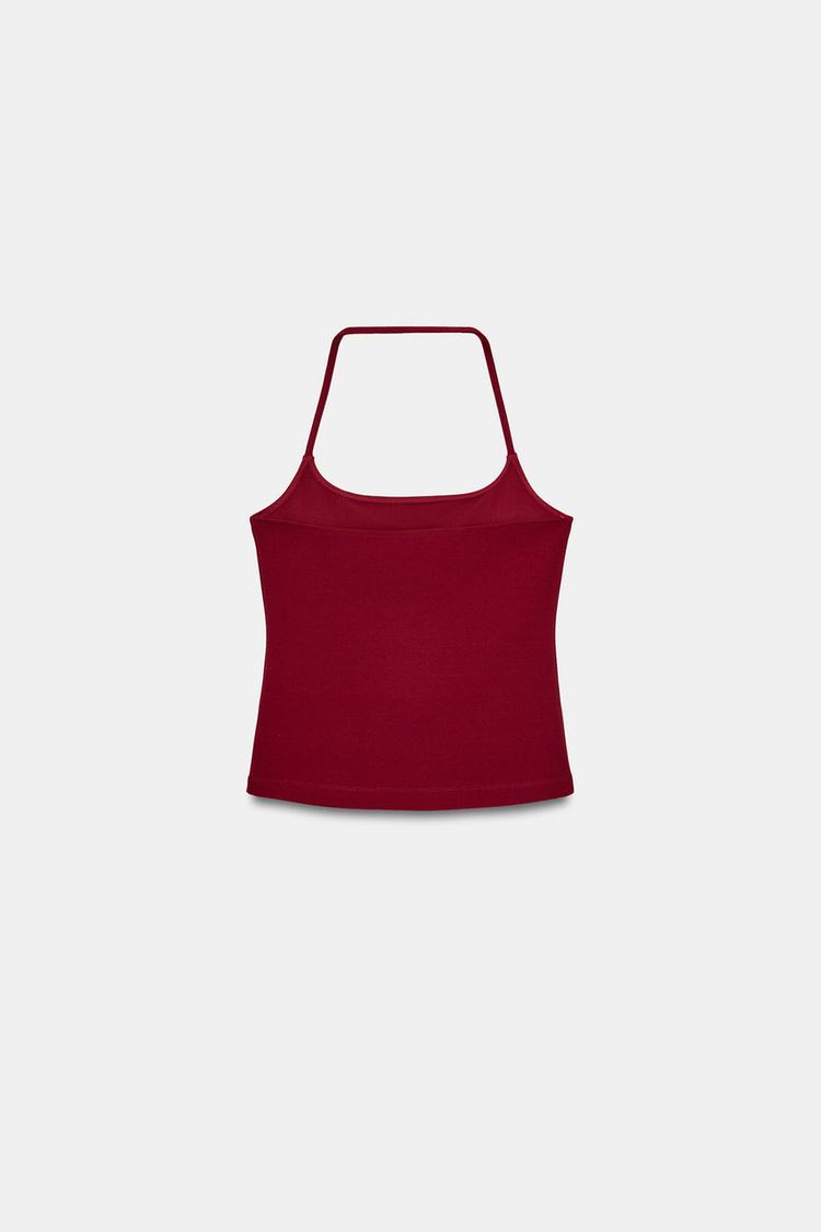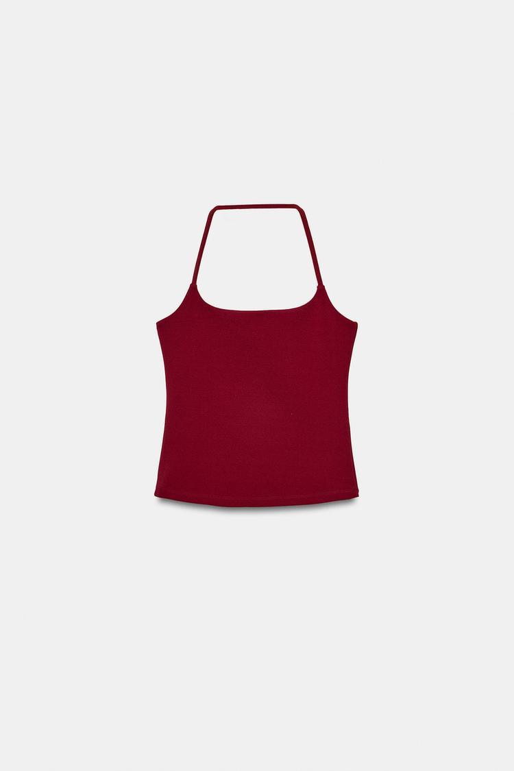 ZARA ЭЛАСТИЧНЫЙ ТОП С ГОРЛОВИНОЙ ХАЛТЕР, ЯРКО-КРАСНЫЙ
