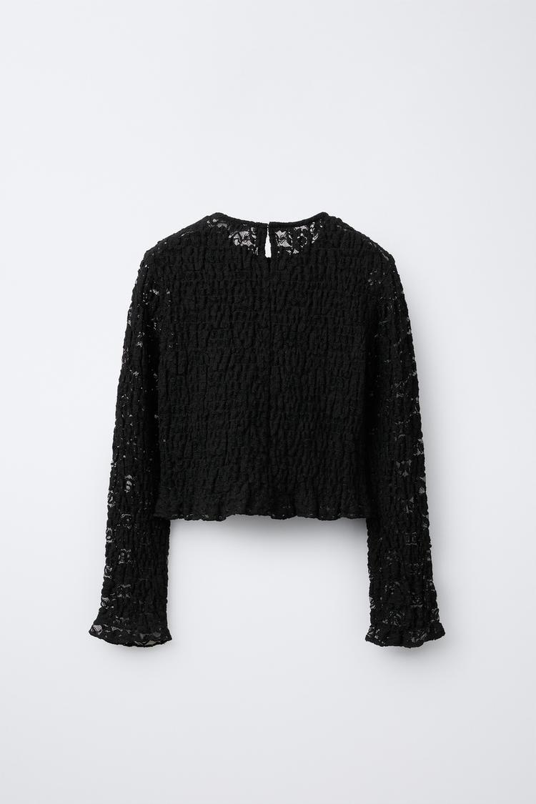ZARA ЭЛАСТИЧНЫЙ ТОП С КРУЖЕВОМ, ЧЕРНЫЙ