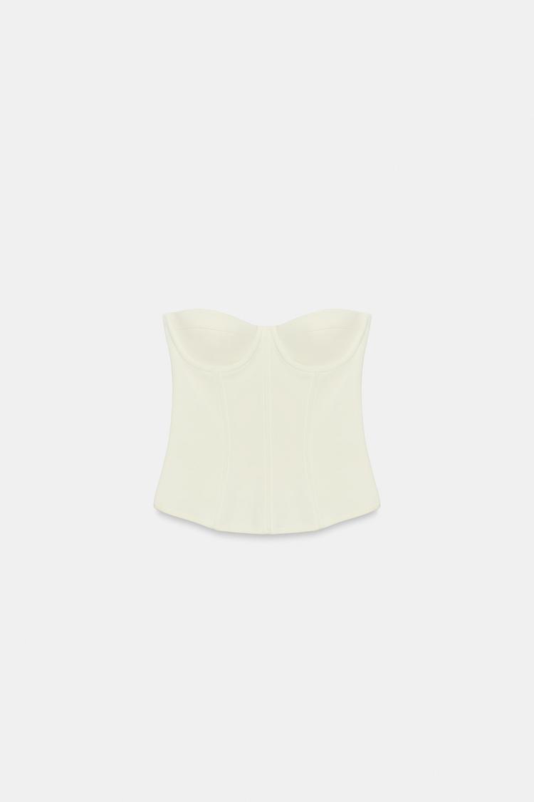 ZARA ЭЛАСТИЧНЫЙ ТРИКОТАЖНЫЙ КОРСЕТ, ЖЕЛТОВАТО-БЕЛЫЙ