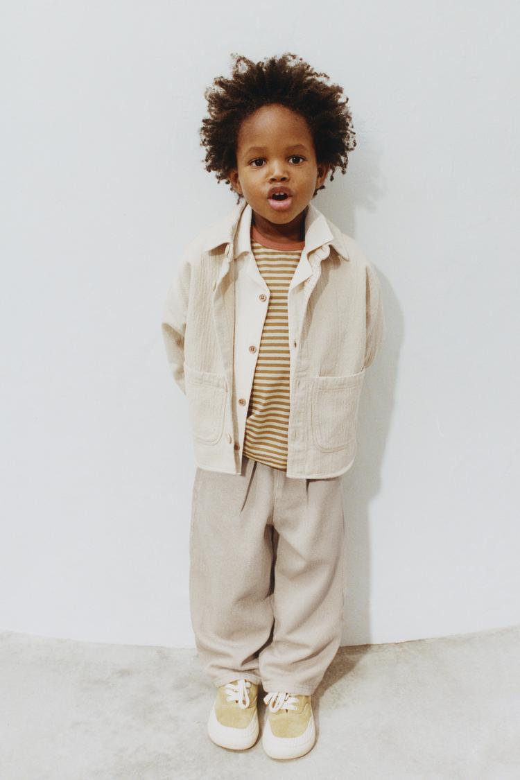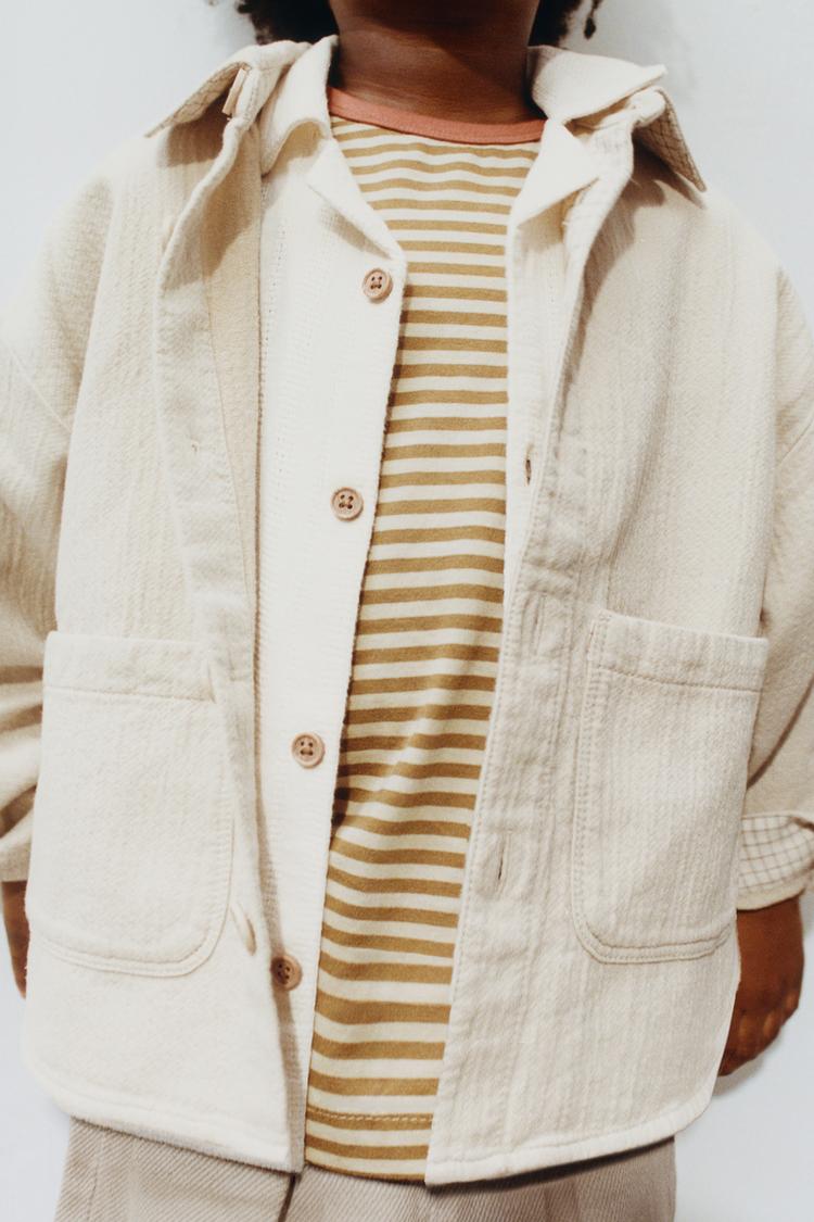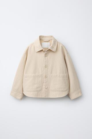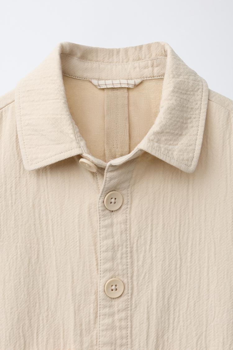 ZARA ФАКТУРНАЯ КУРТКА-РУБАШКА ИЗ ХЛОПКА И ЛЬНА, ЭКРЮ