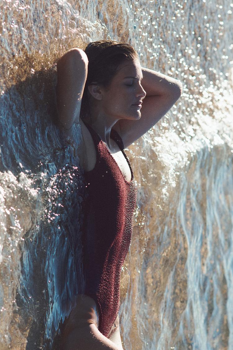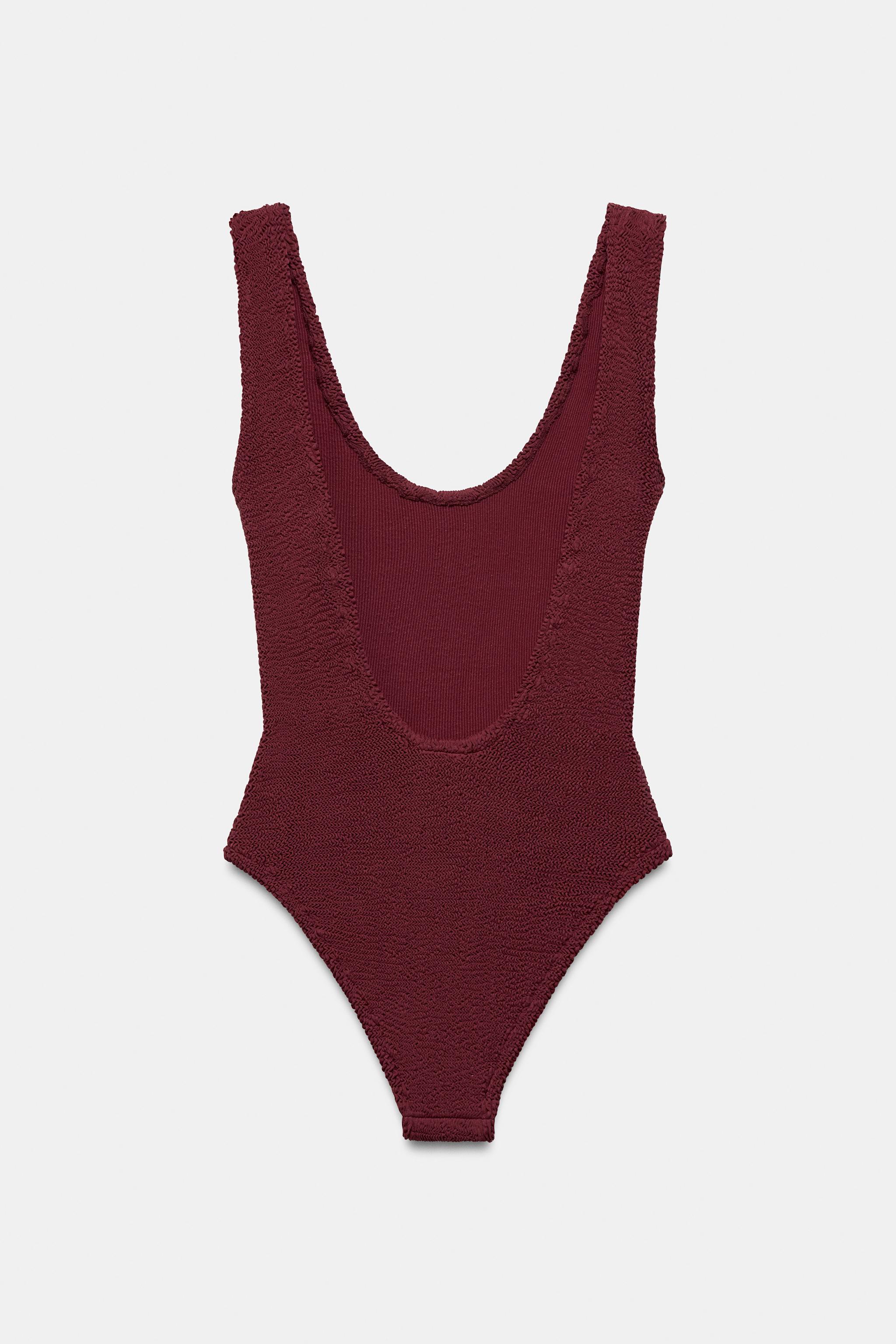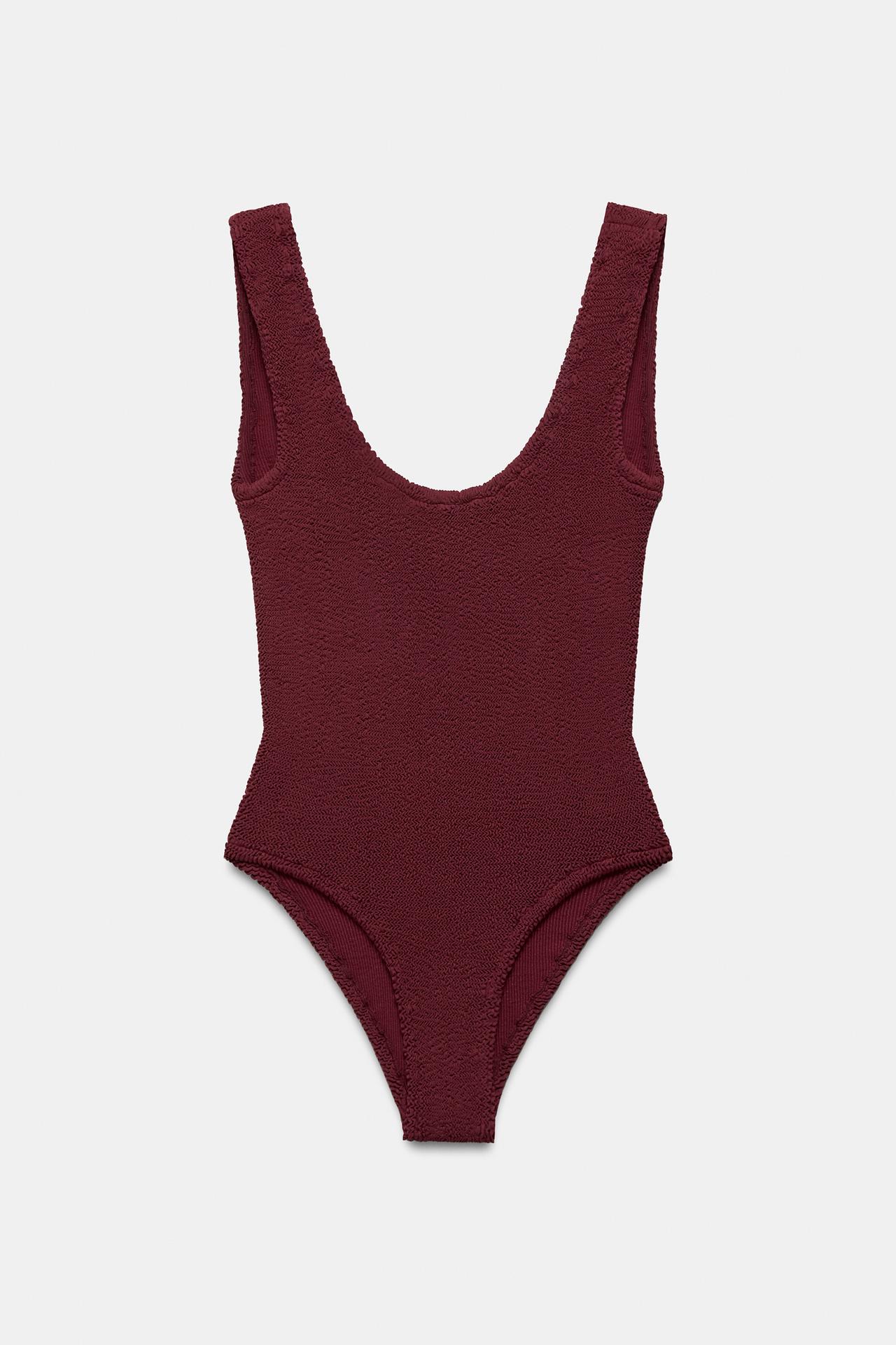 ZARA ФАКТУРНЫЙ КУПАЛЬНИК, КОРИЧНЕВЫЙ