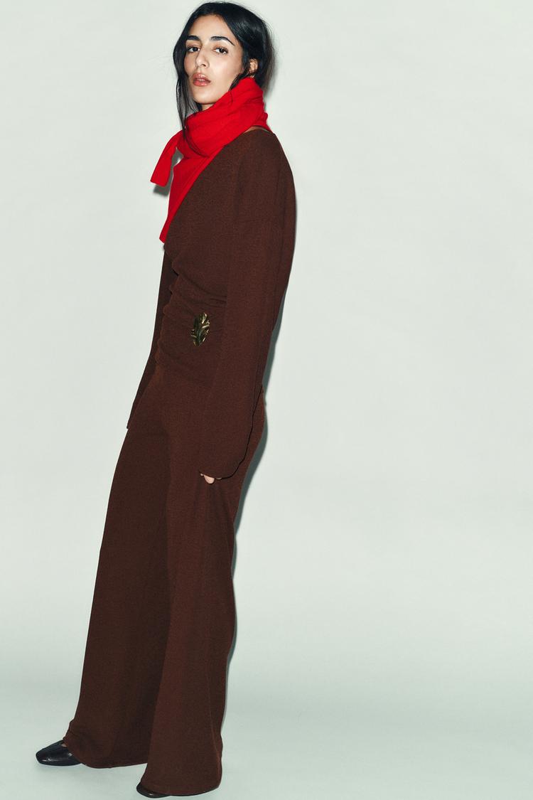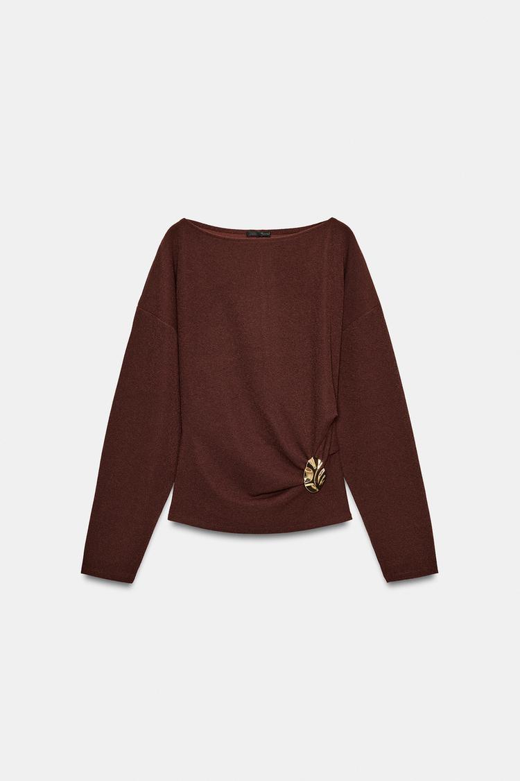 ZARA ФАКТУРНЫЙ ТОП С ПРЯЖКОЙ, КОРИЧНЕВЫЙ