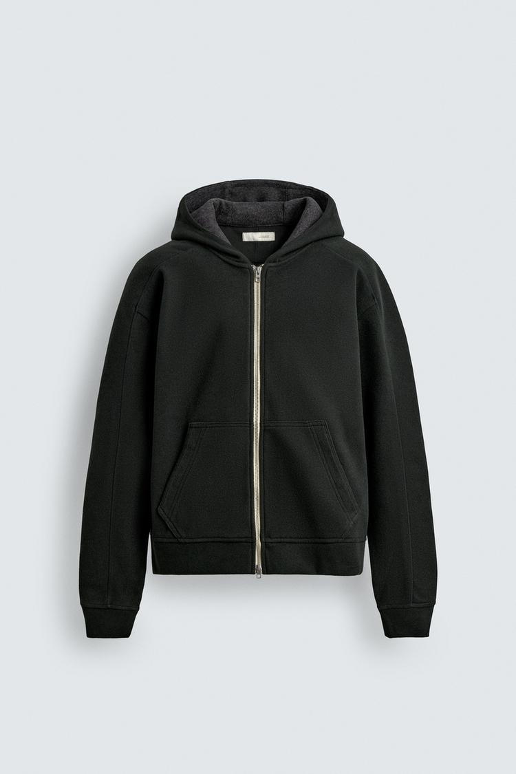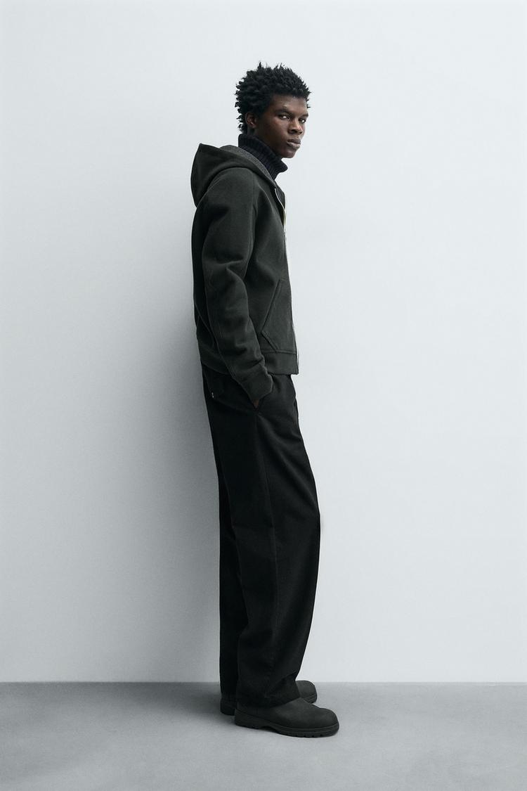 ZARA ФЕТРОВОЕ ХУДИ С КАПЮШОНОМ, ТЕМНО-ЗЕЛЕНЫЙ