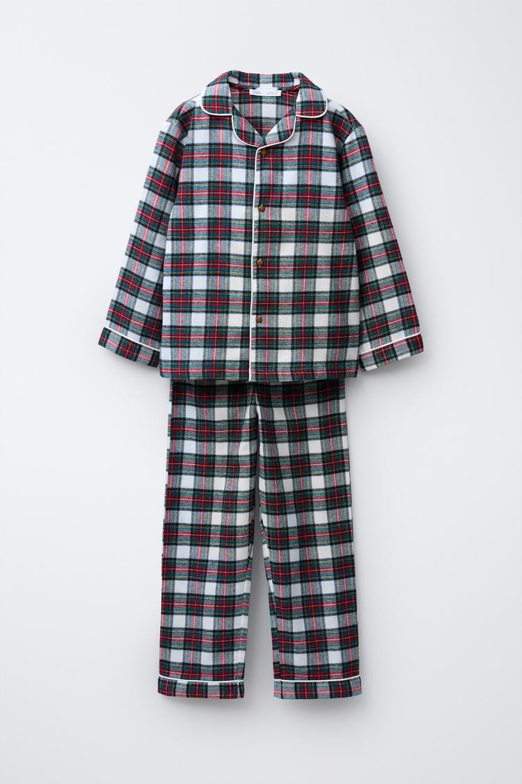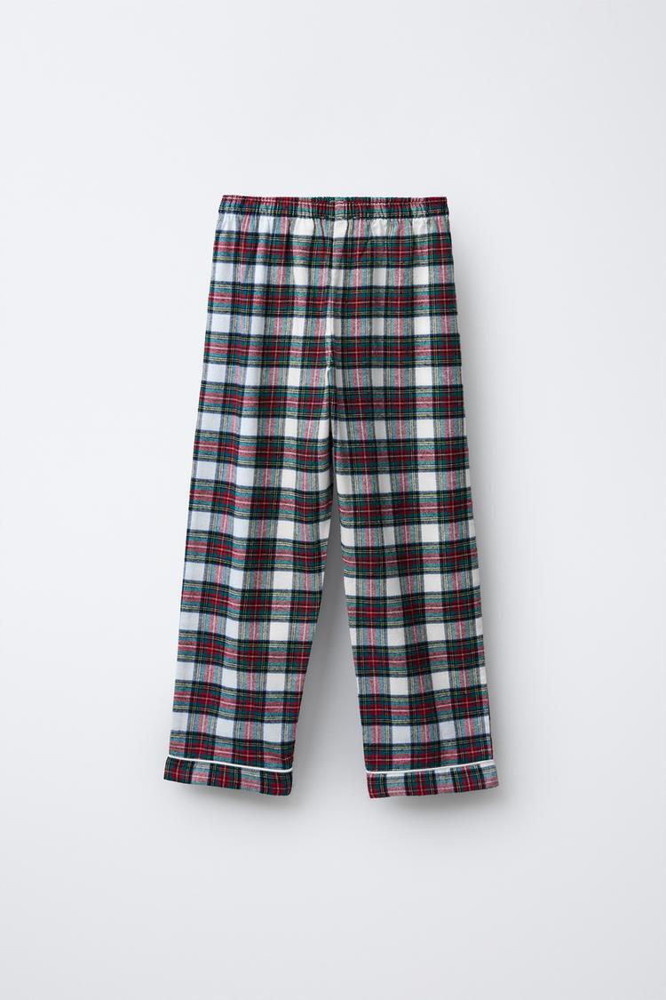 ZARA ФЛАНЕЛЕВАЯ ПИЖАМА В КЛЕТКУ, ЭКРЮ