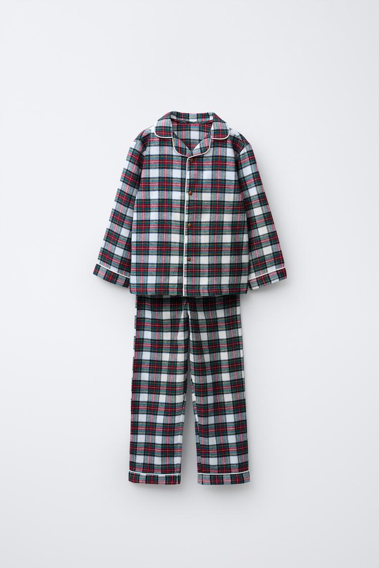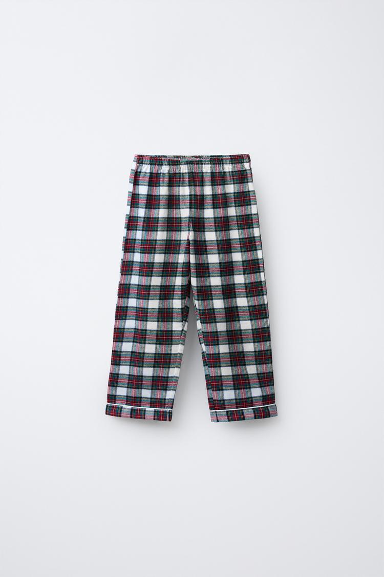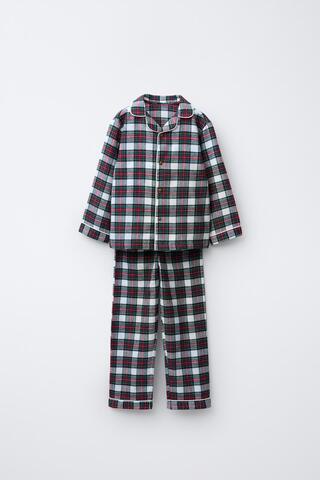 ZARA ФЛАНЕЛЕВАЯ ПИЖАМА В КЛЕТКУ, ЭКРЮ